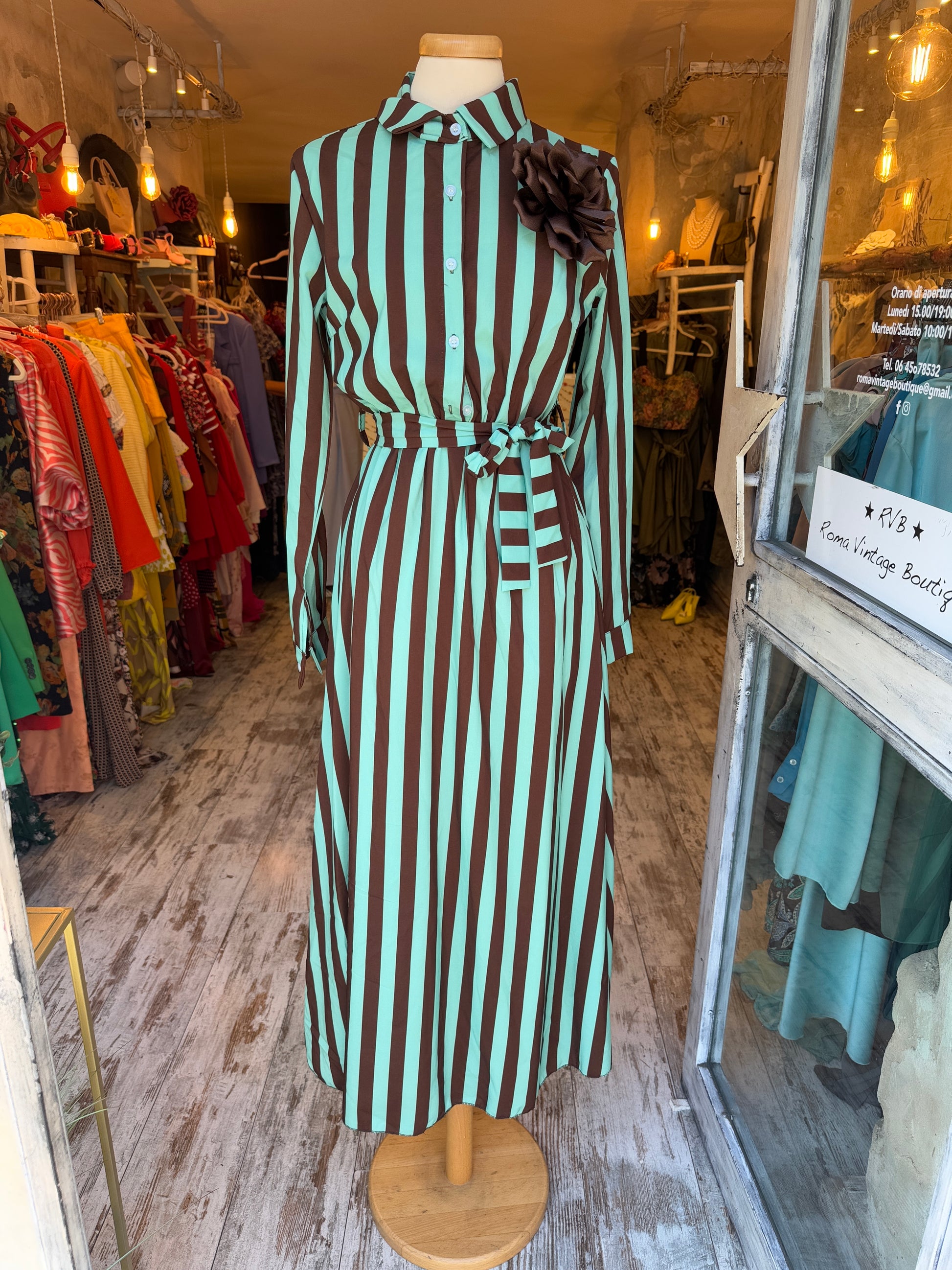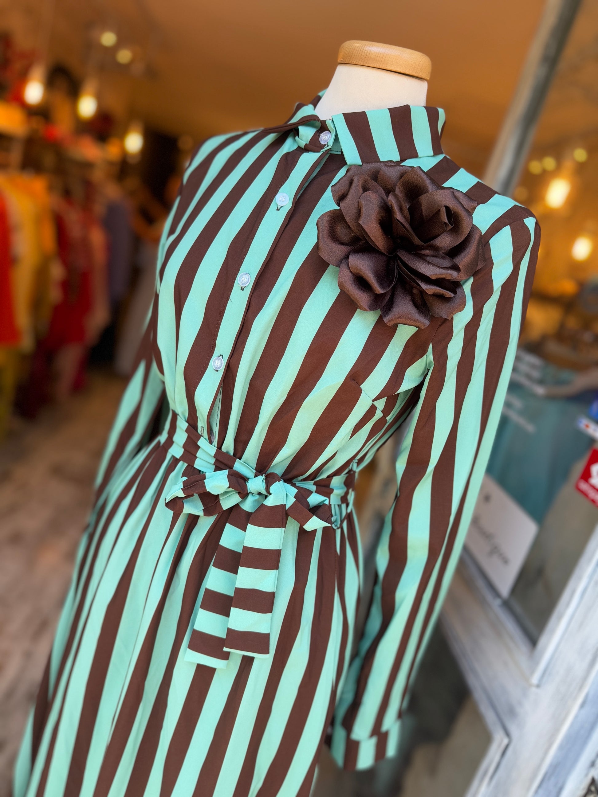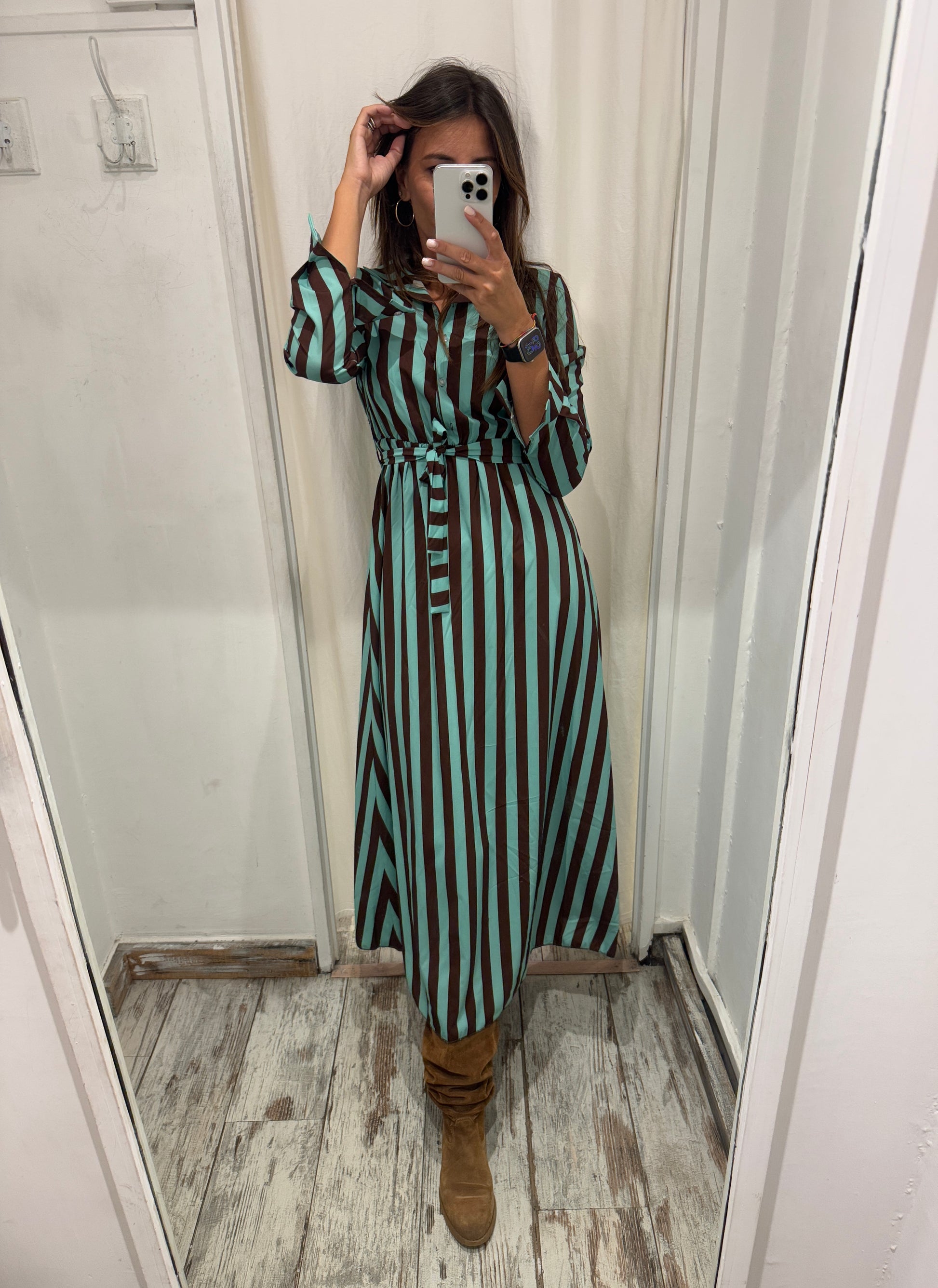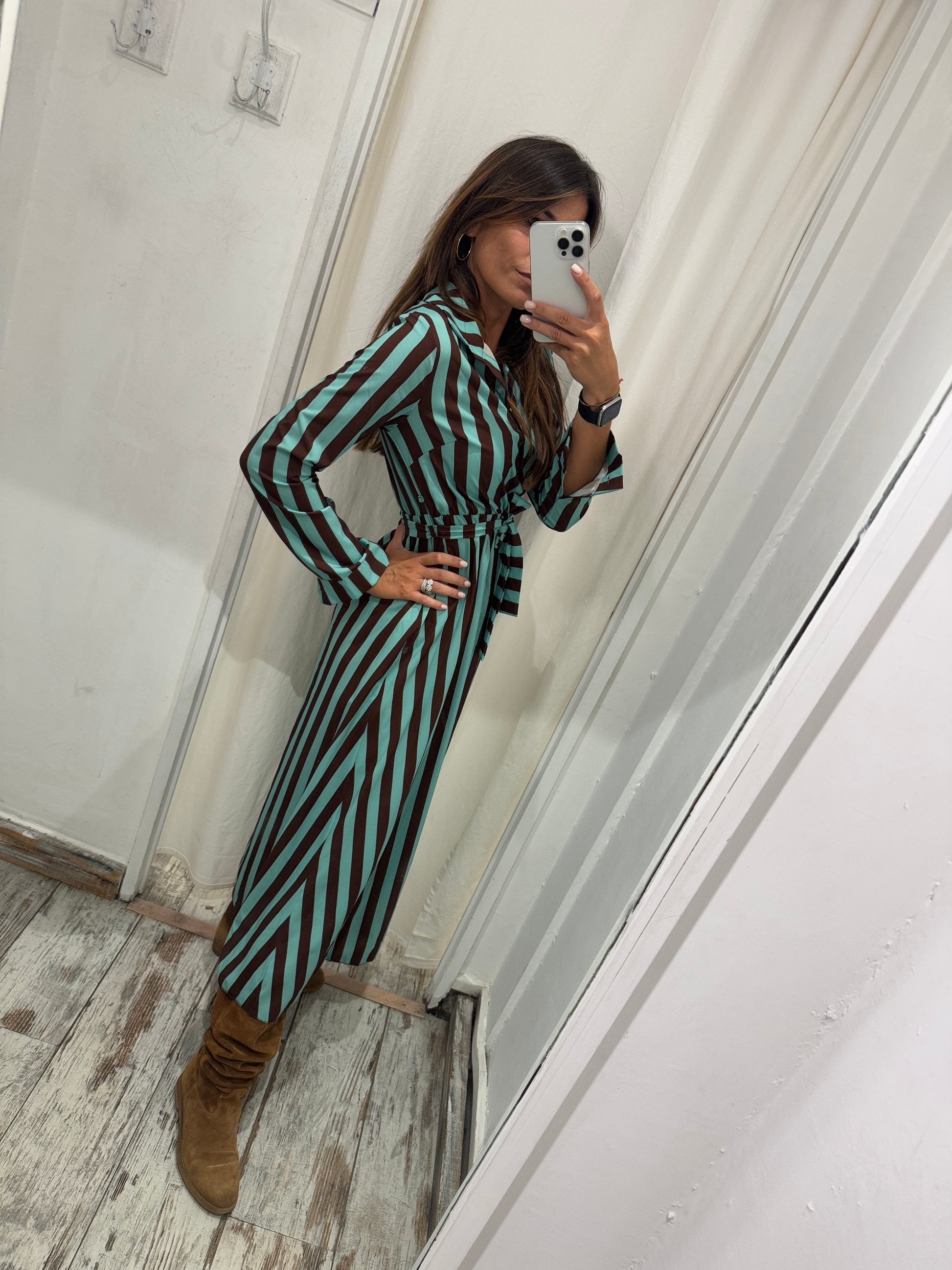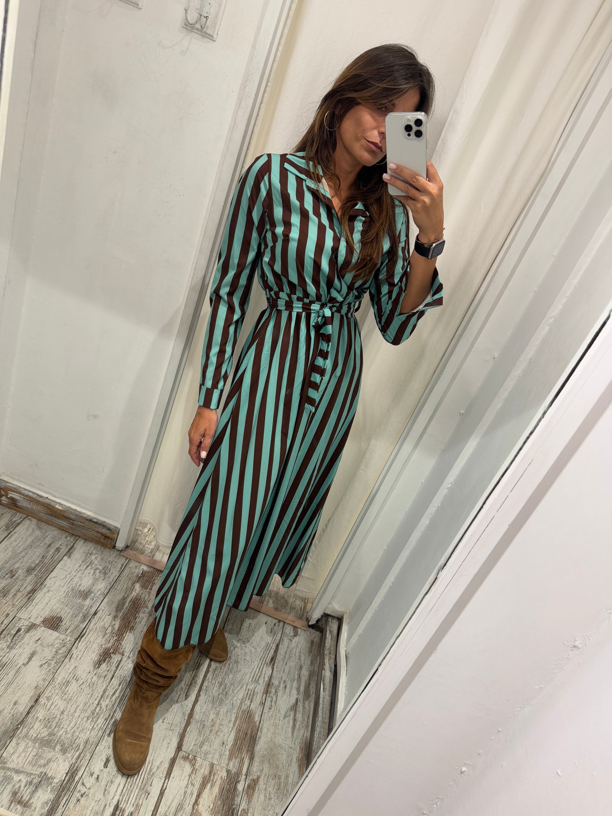 ABITO CHEMISIER RIGHE TIFFANY E MARRONE