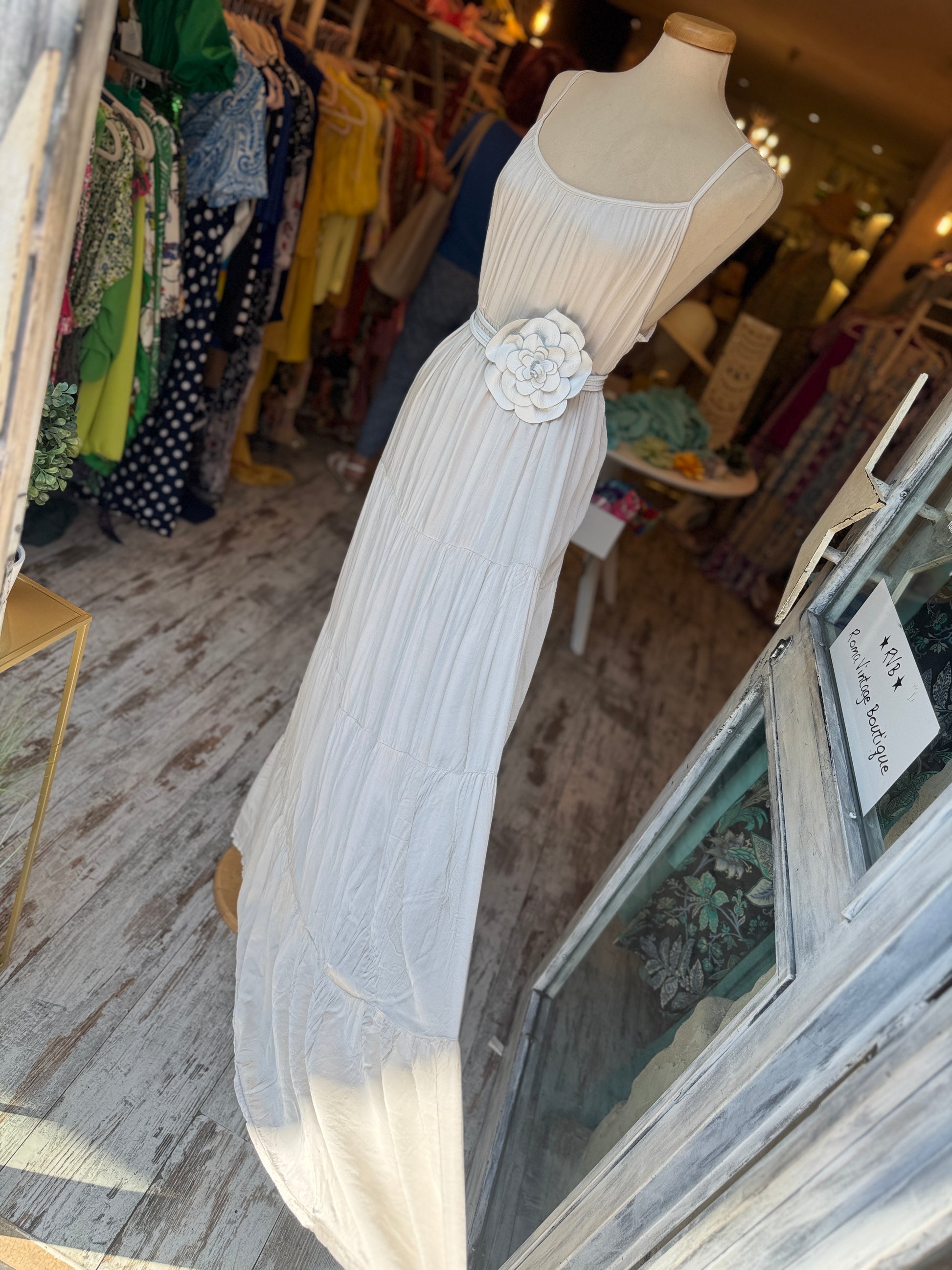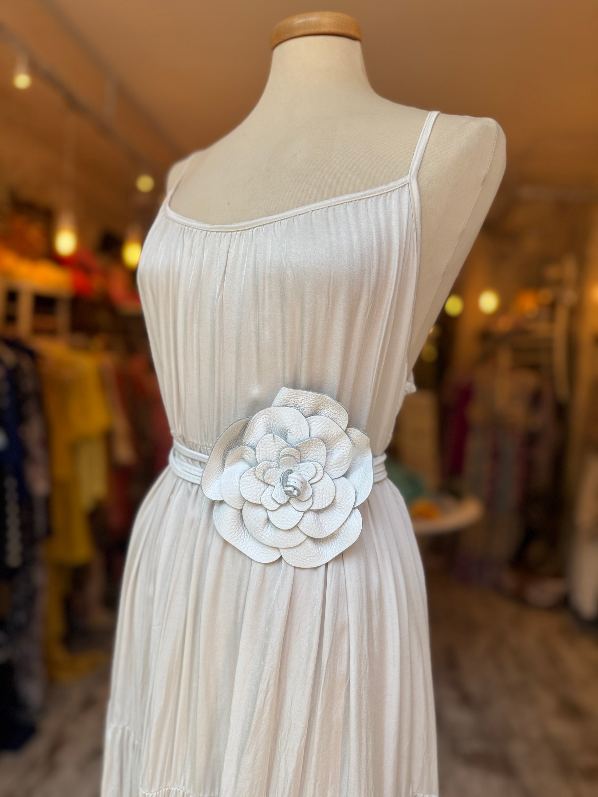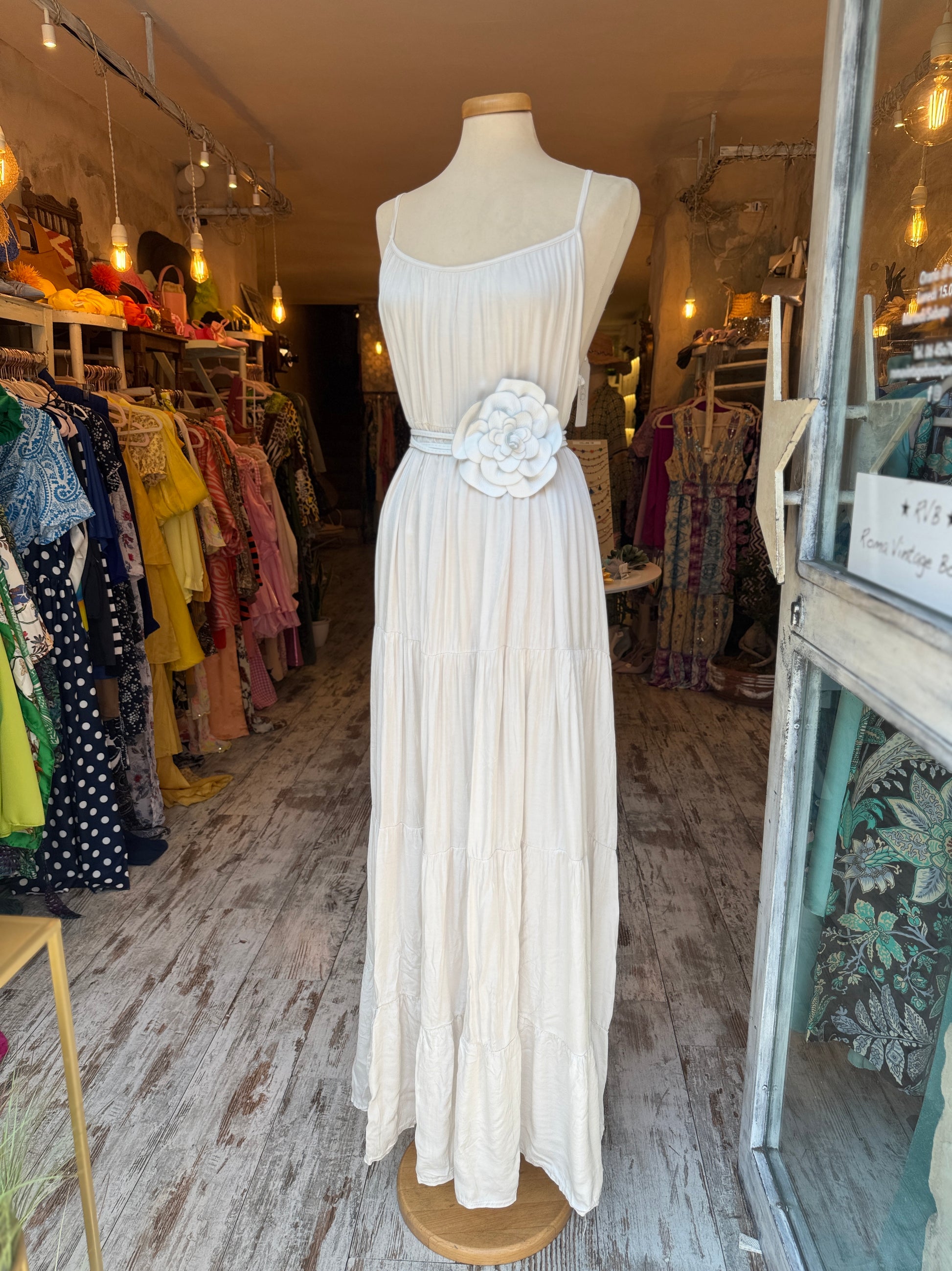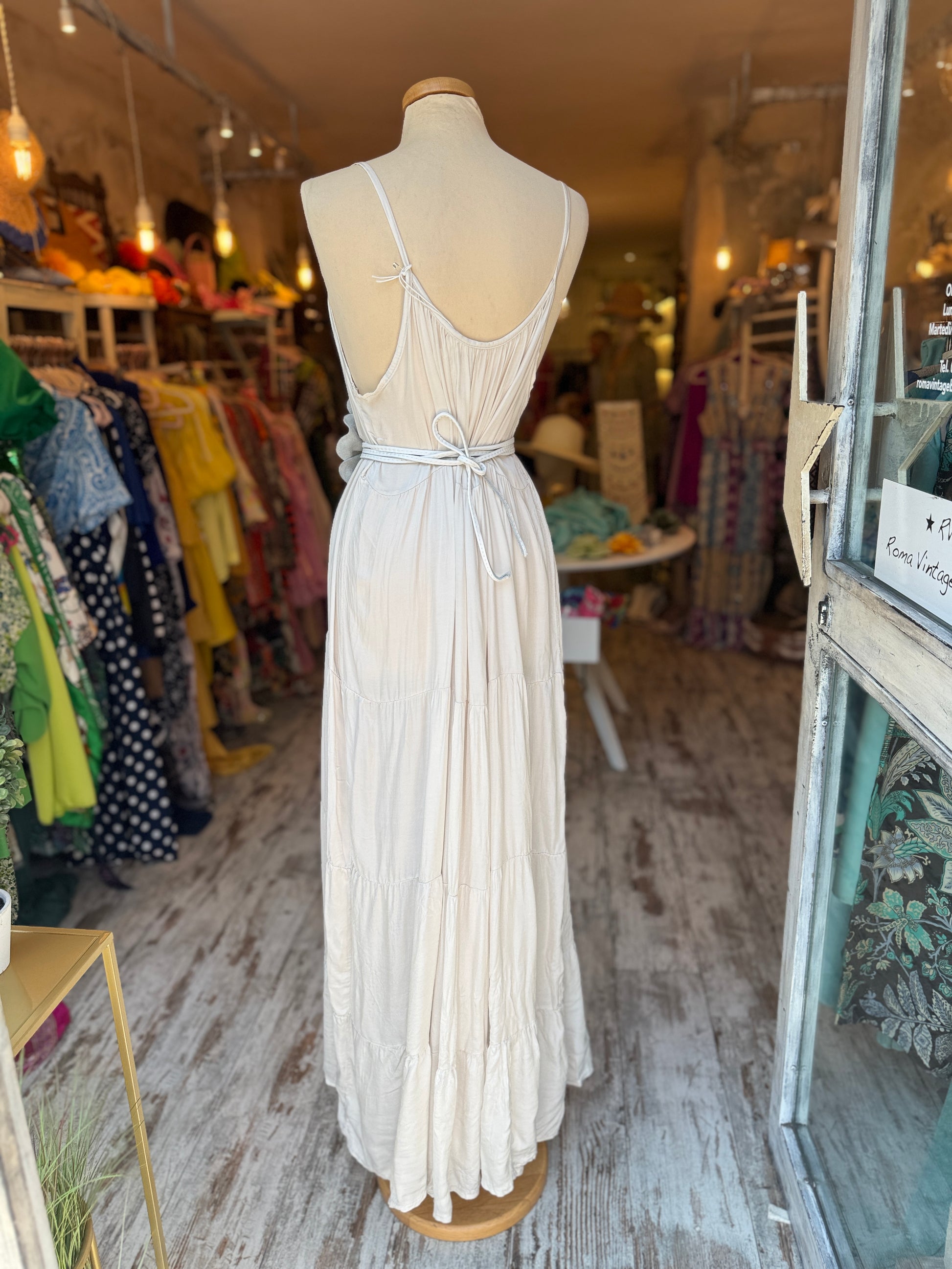 Abito lungo e ampio con bretelline satinato. Cintura vendita separatamente.