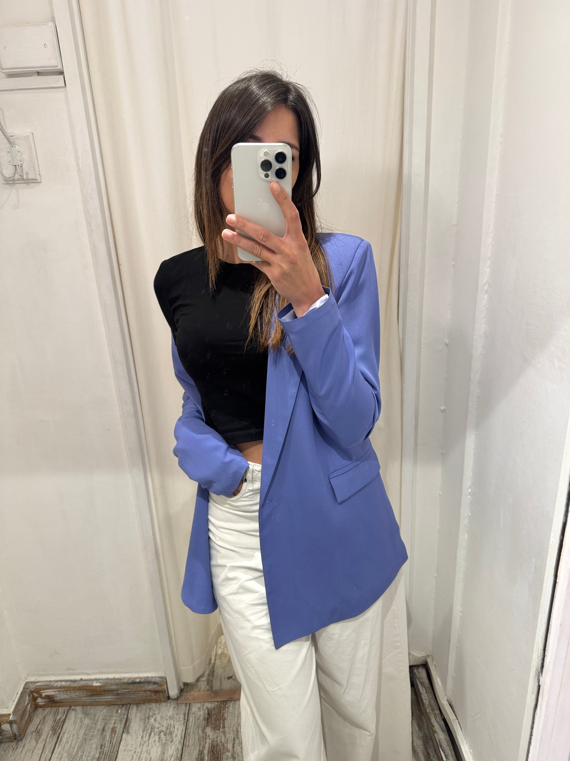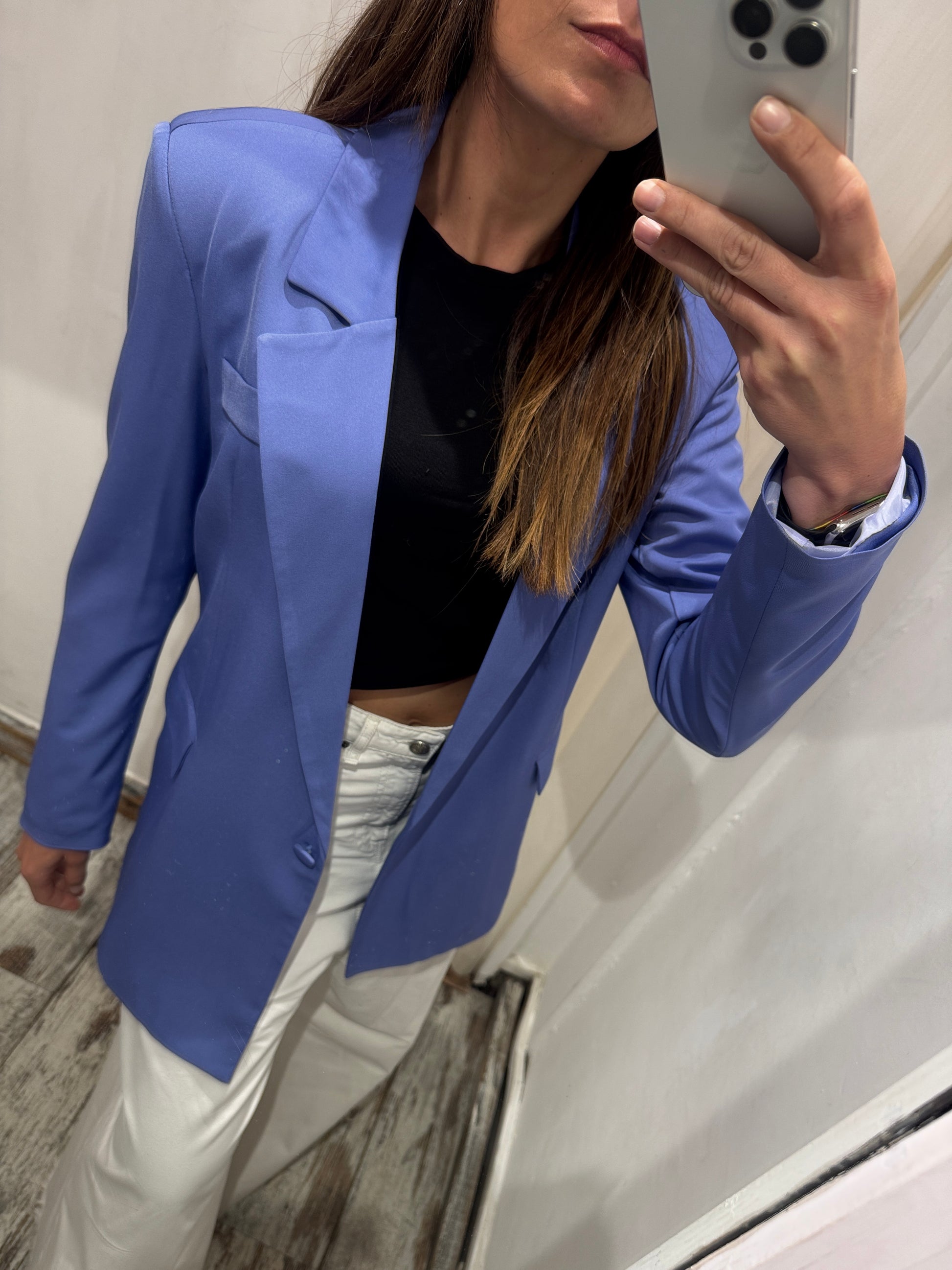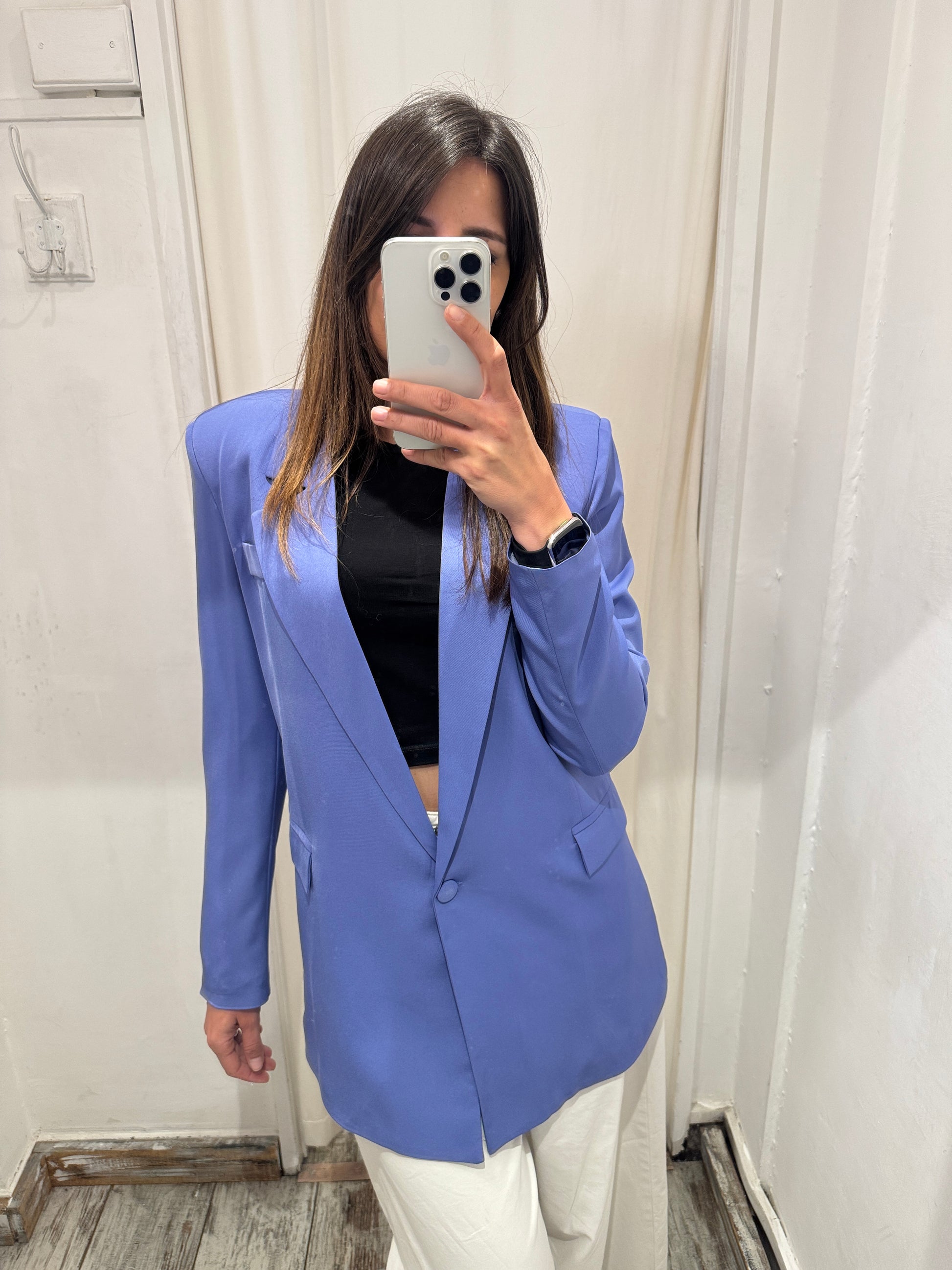 Blazer over monopetto Le Robe color glicine. Tasxhe finte. Fodera interna
