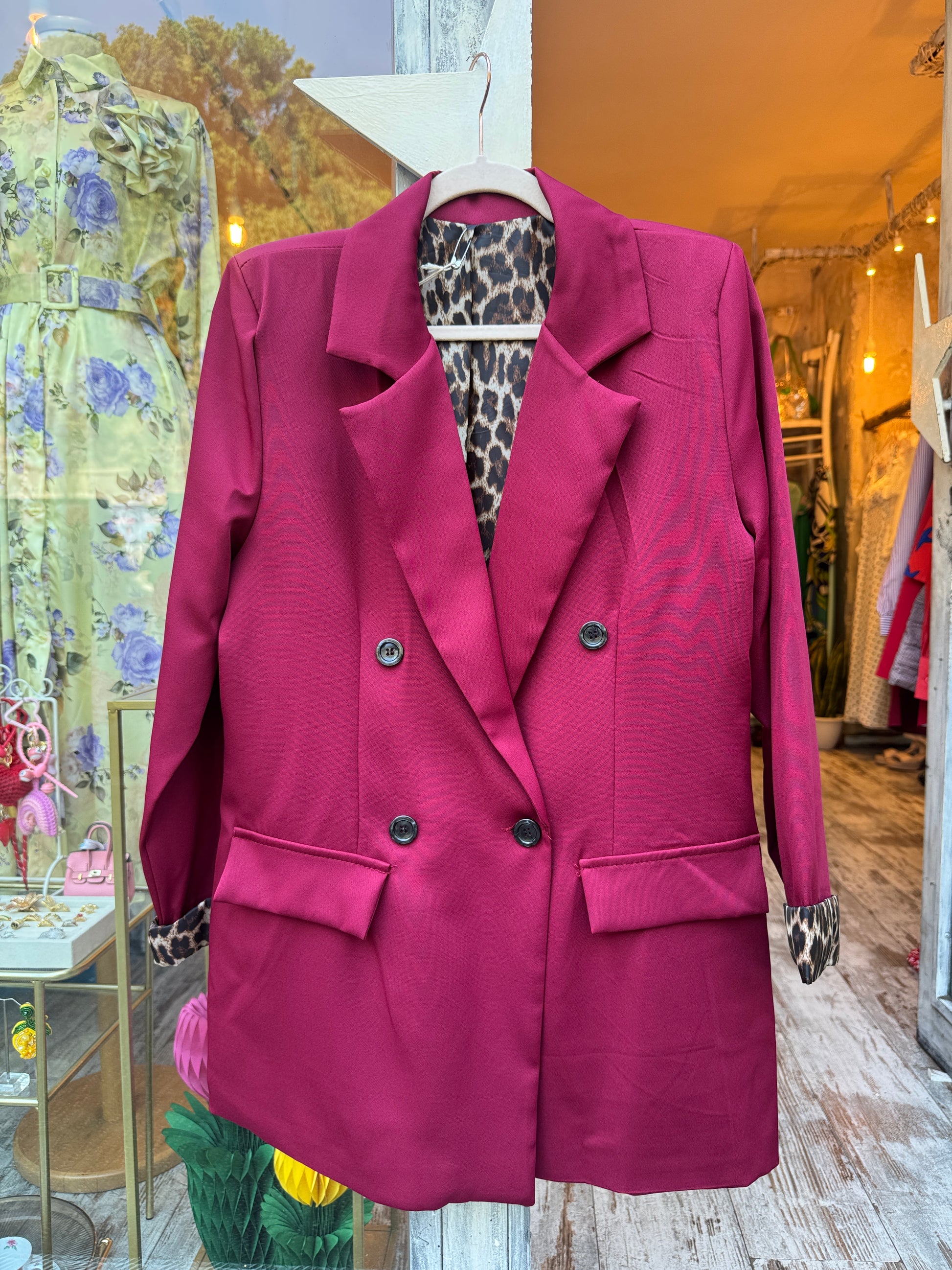 BLAZER OVER BORDEAUX FODERA ANIMALIER