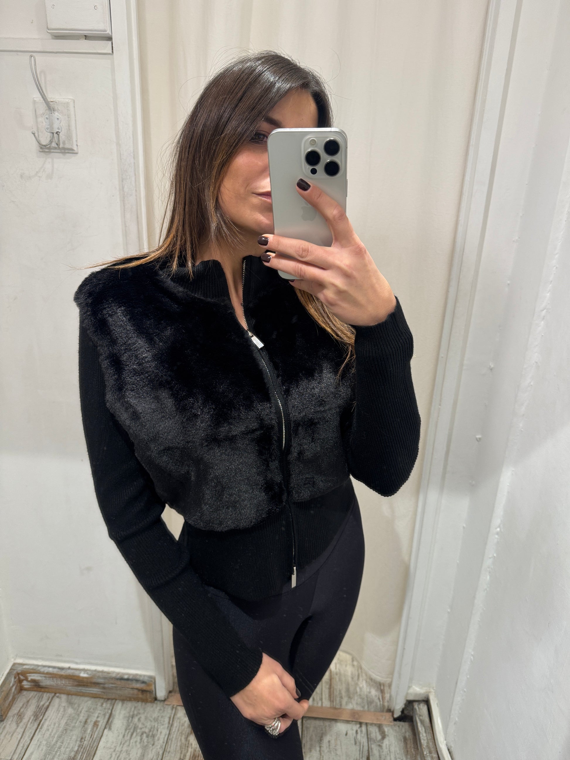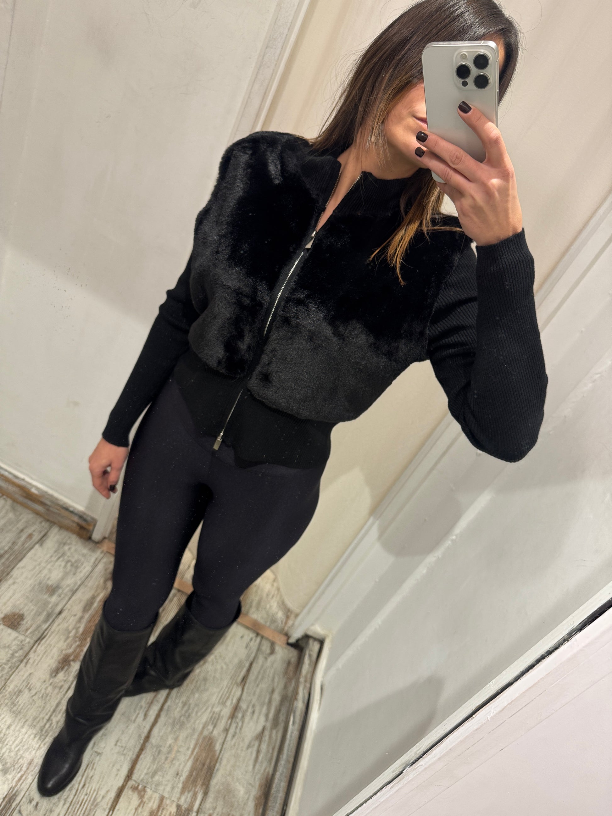 CARDIGAN ZIP ECOPELLICCIA NERO