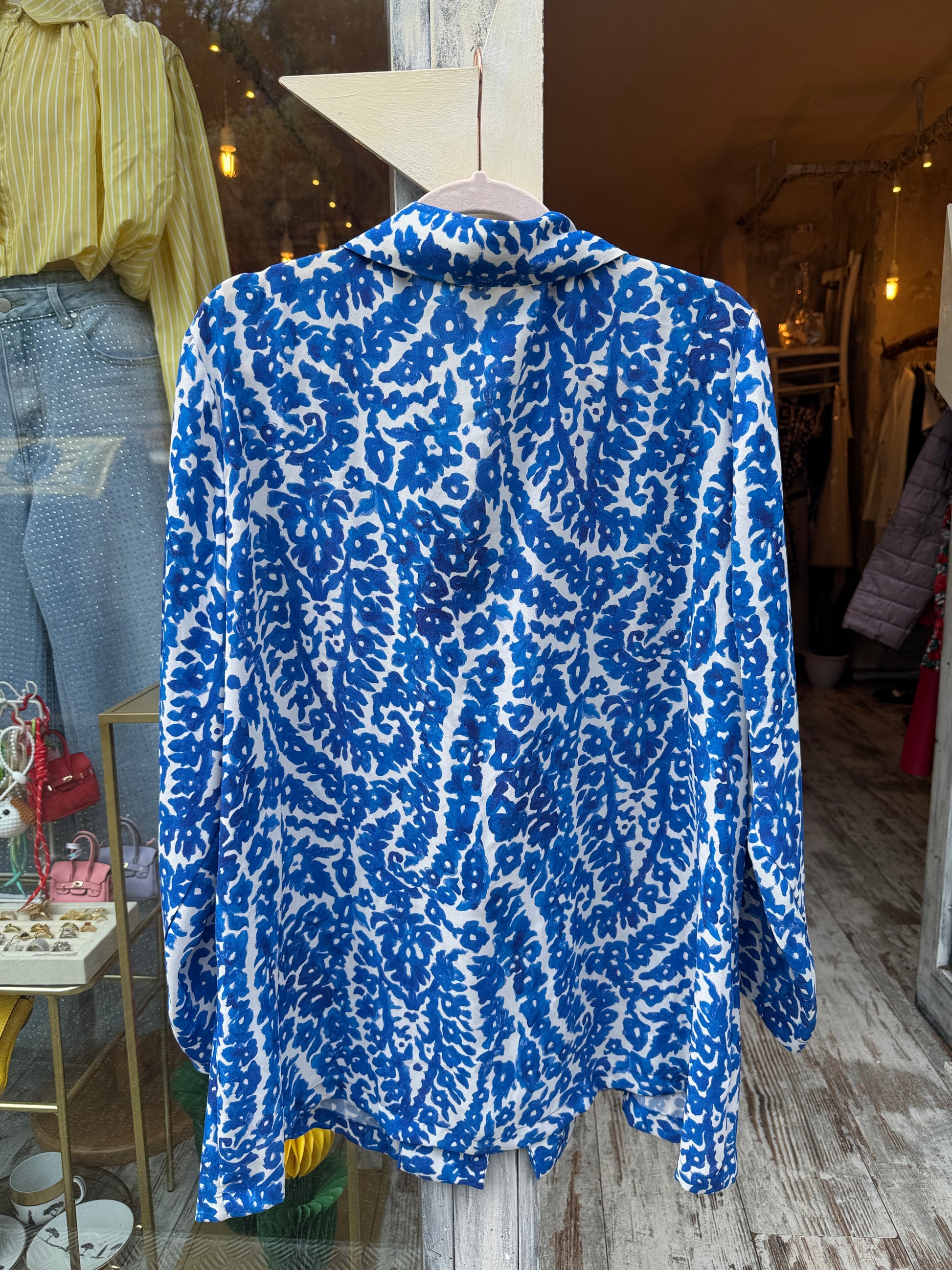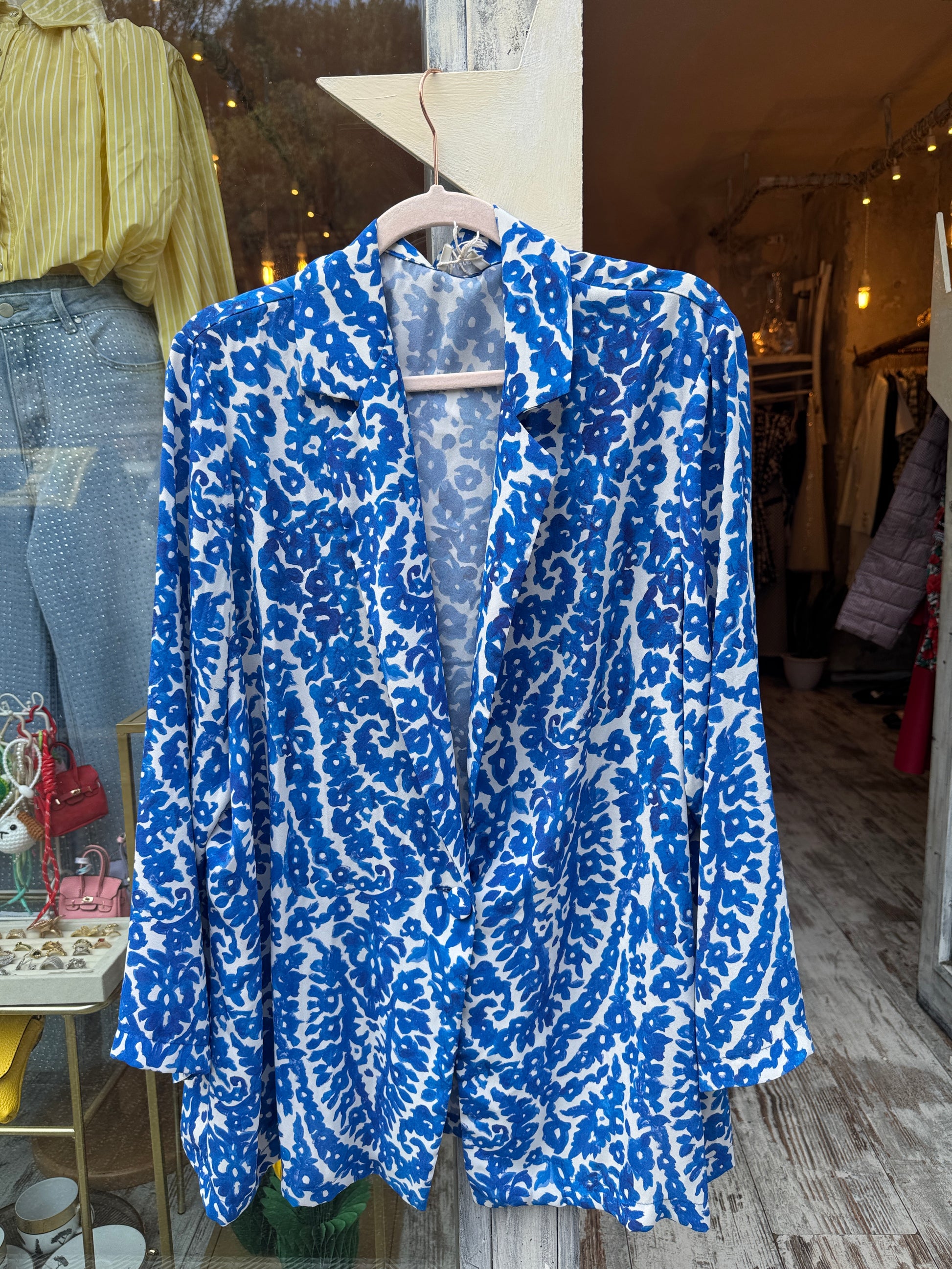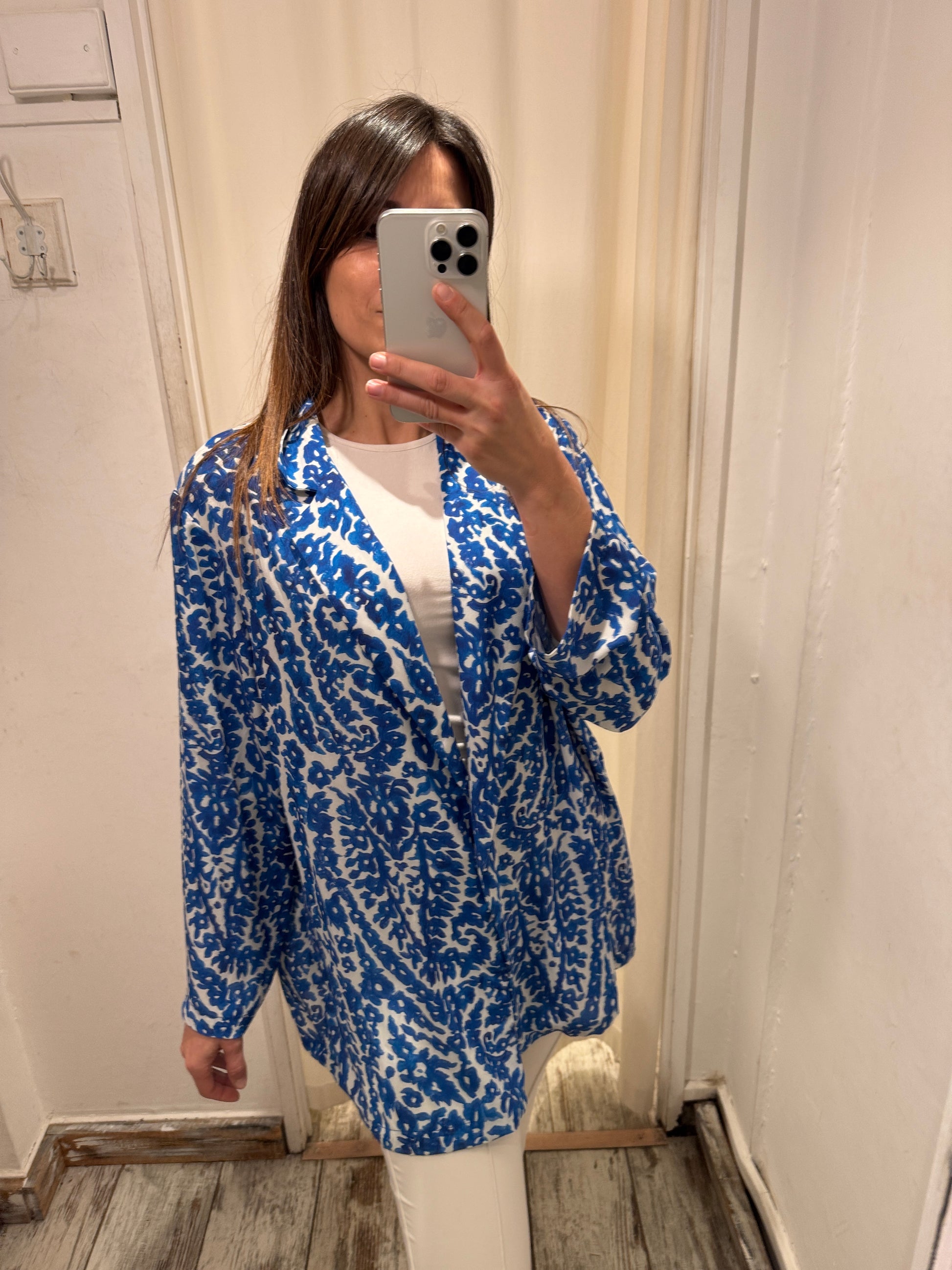 Giacca Oltre monopetto fantasia azzurra sfoderata.