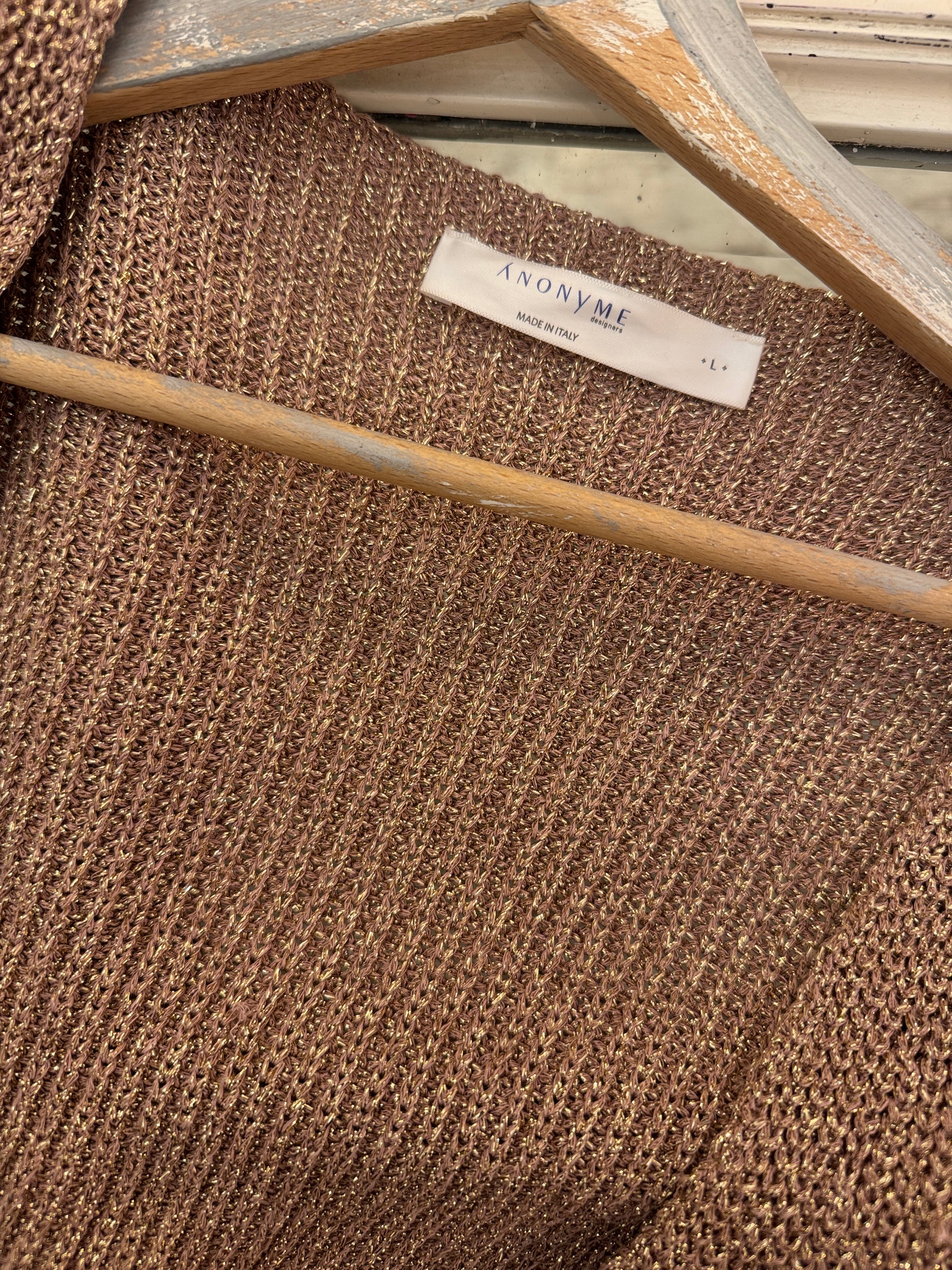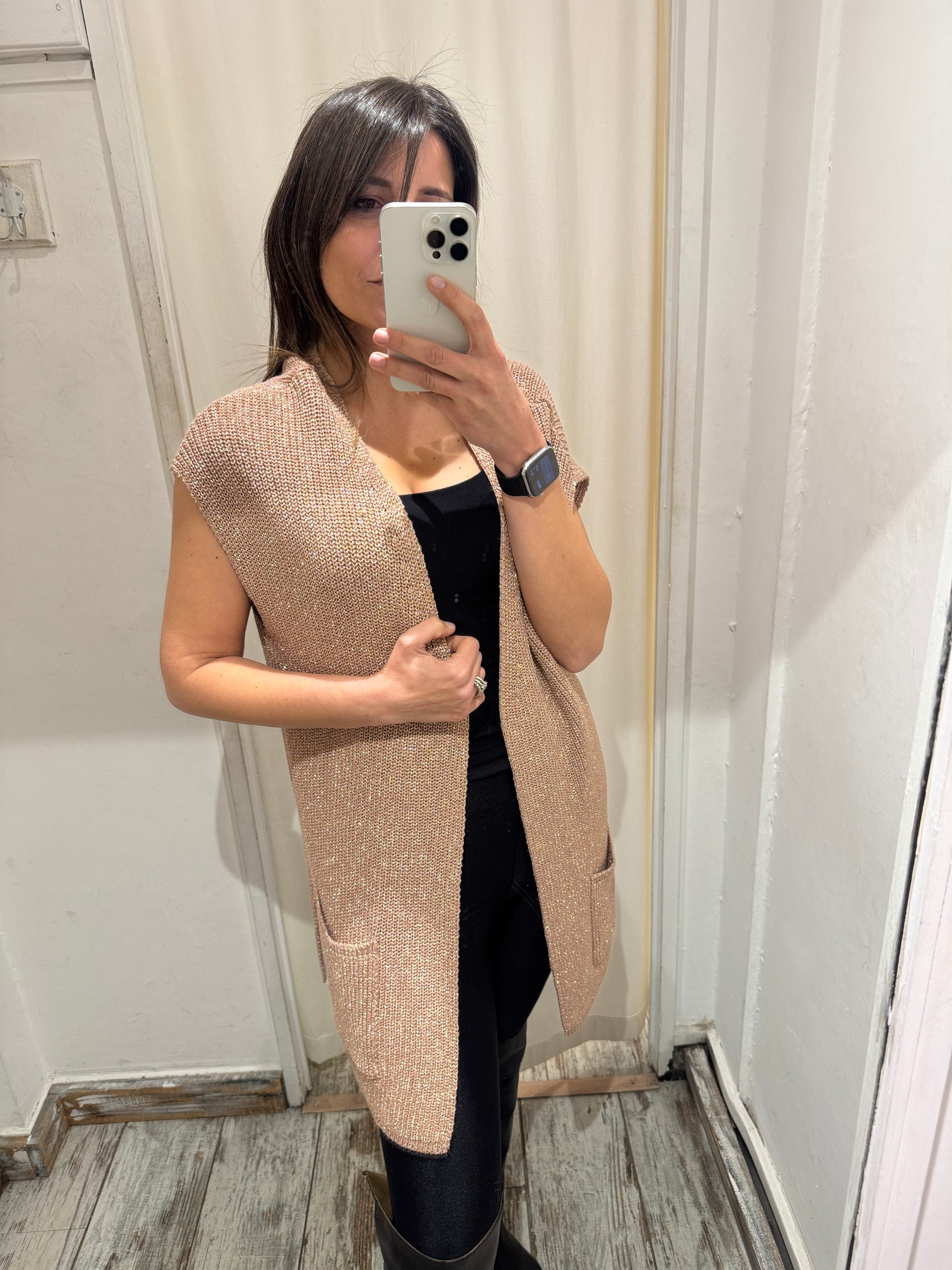 Gilet di maglia Anonyme oro rosa con tasche. Spacchetti laterali