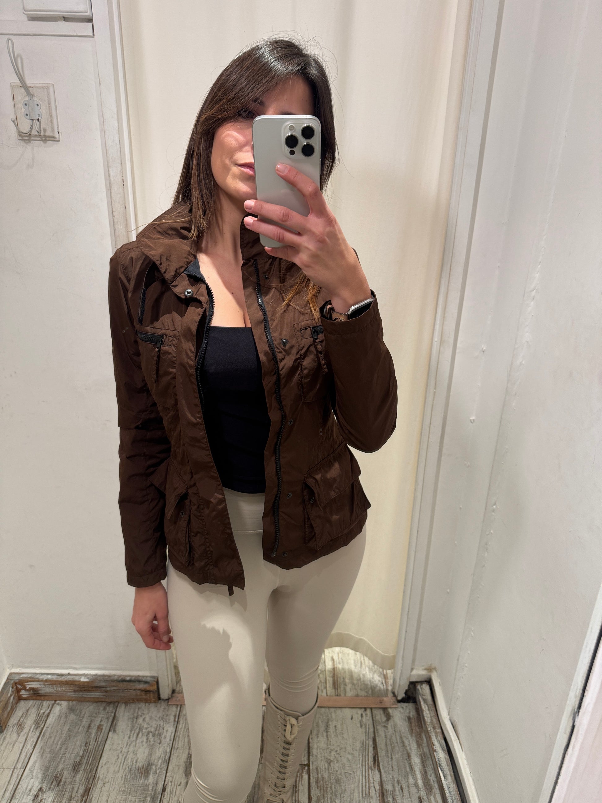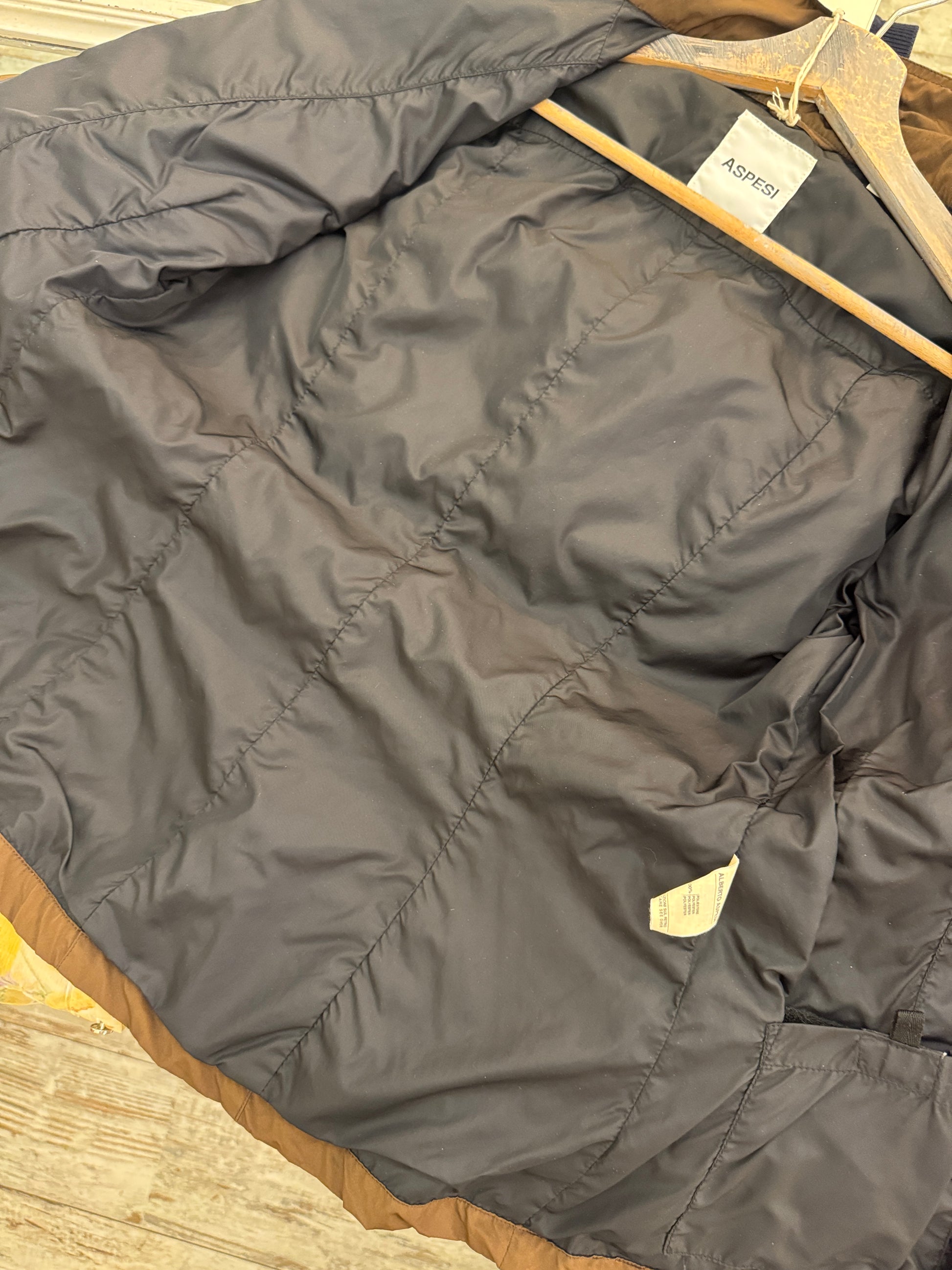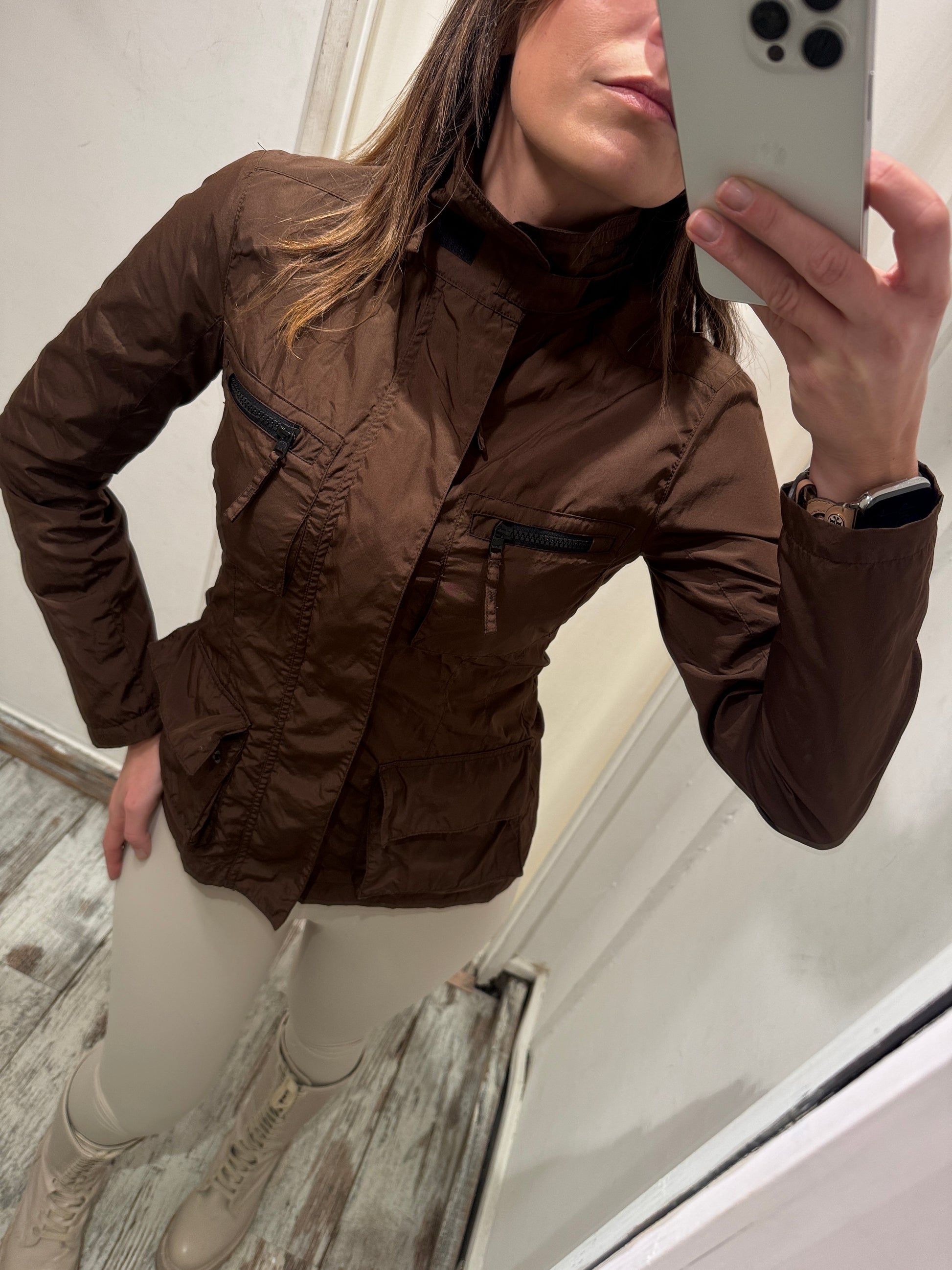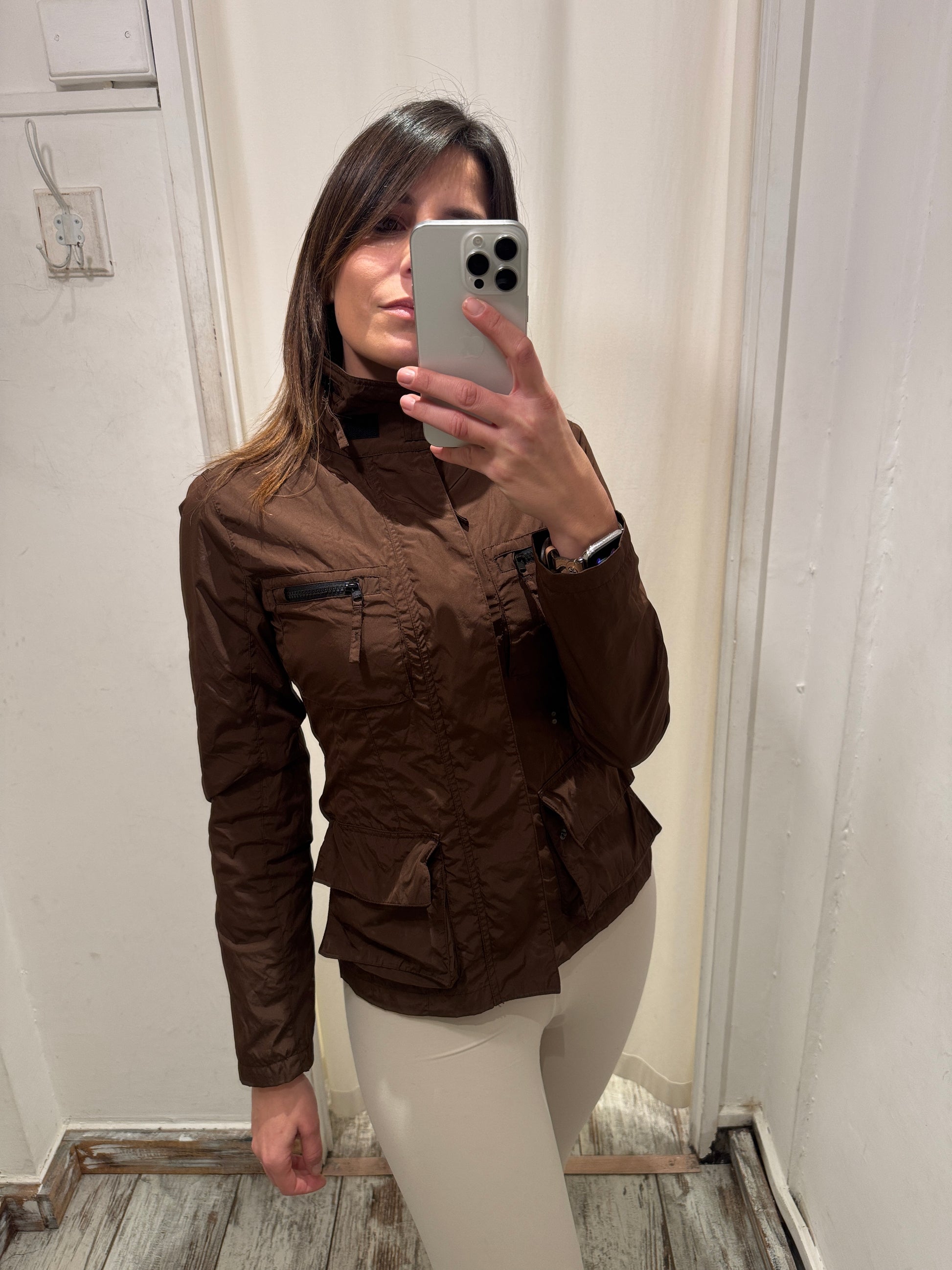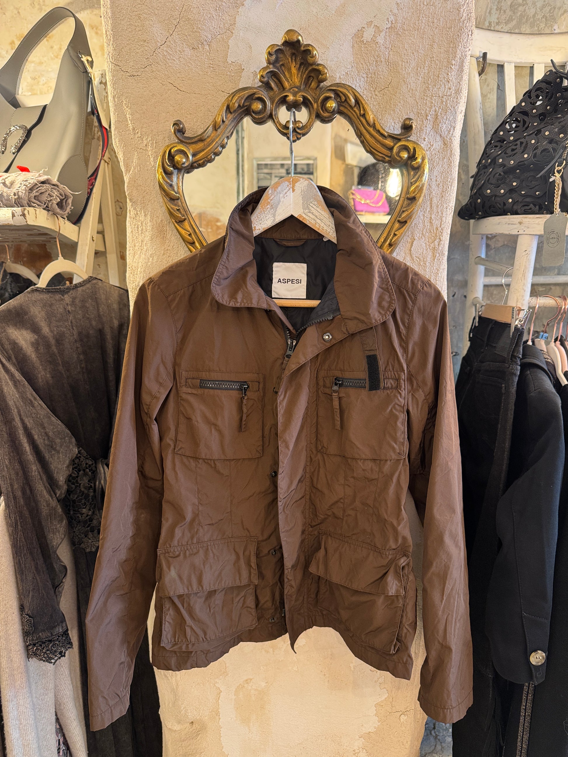 Giubbino leggero Aspesi marrone con fodera interna. 1 tasca interna e 4 esterne. Chiusura zip e bottoni.
