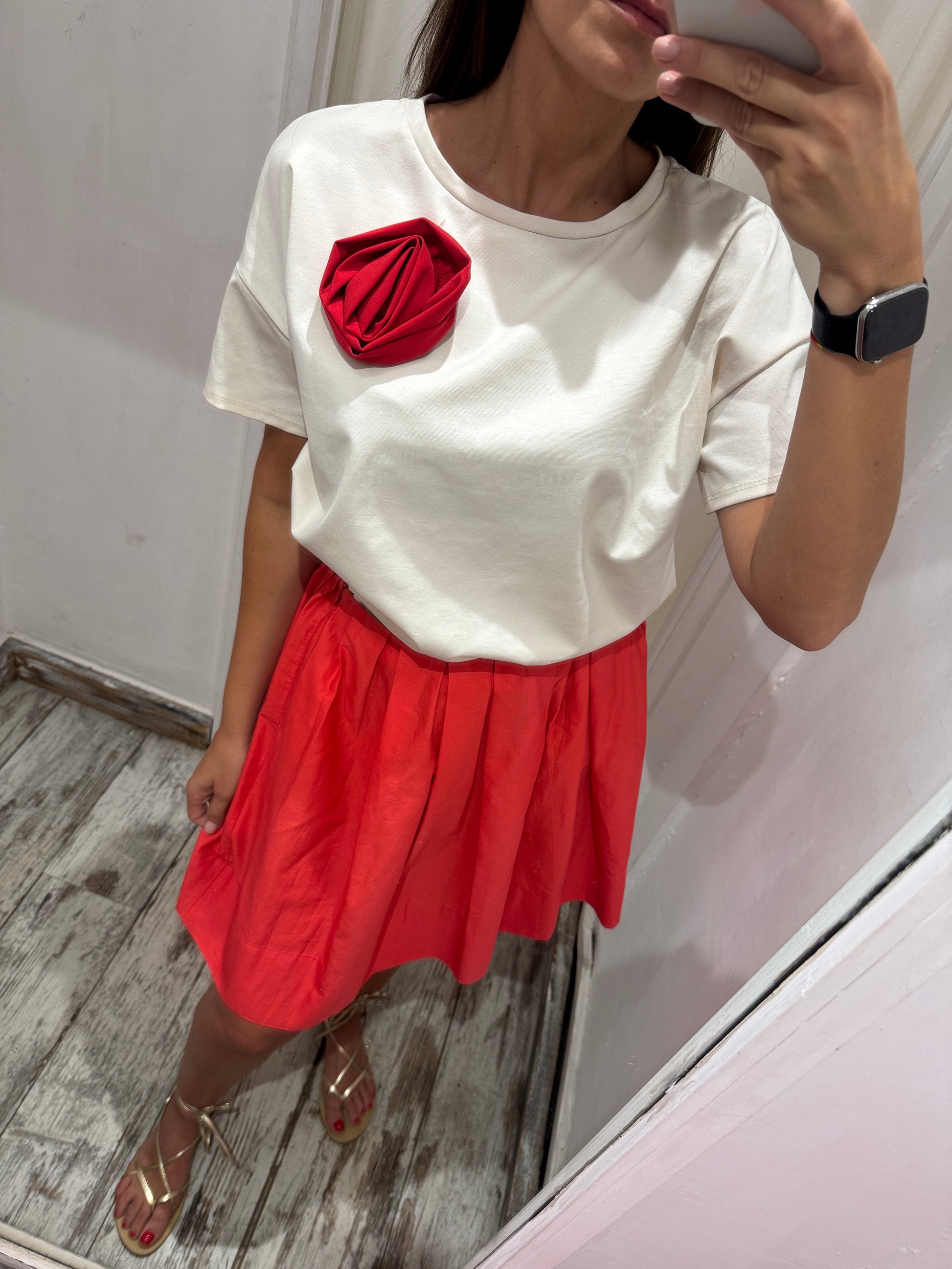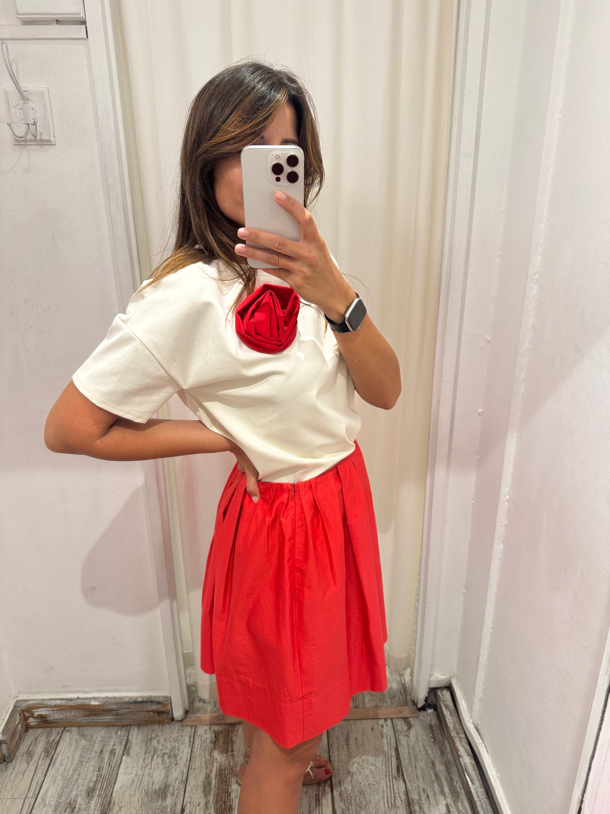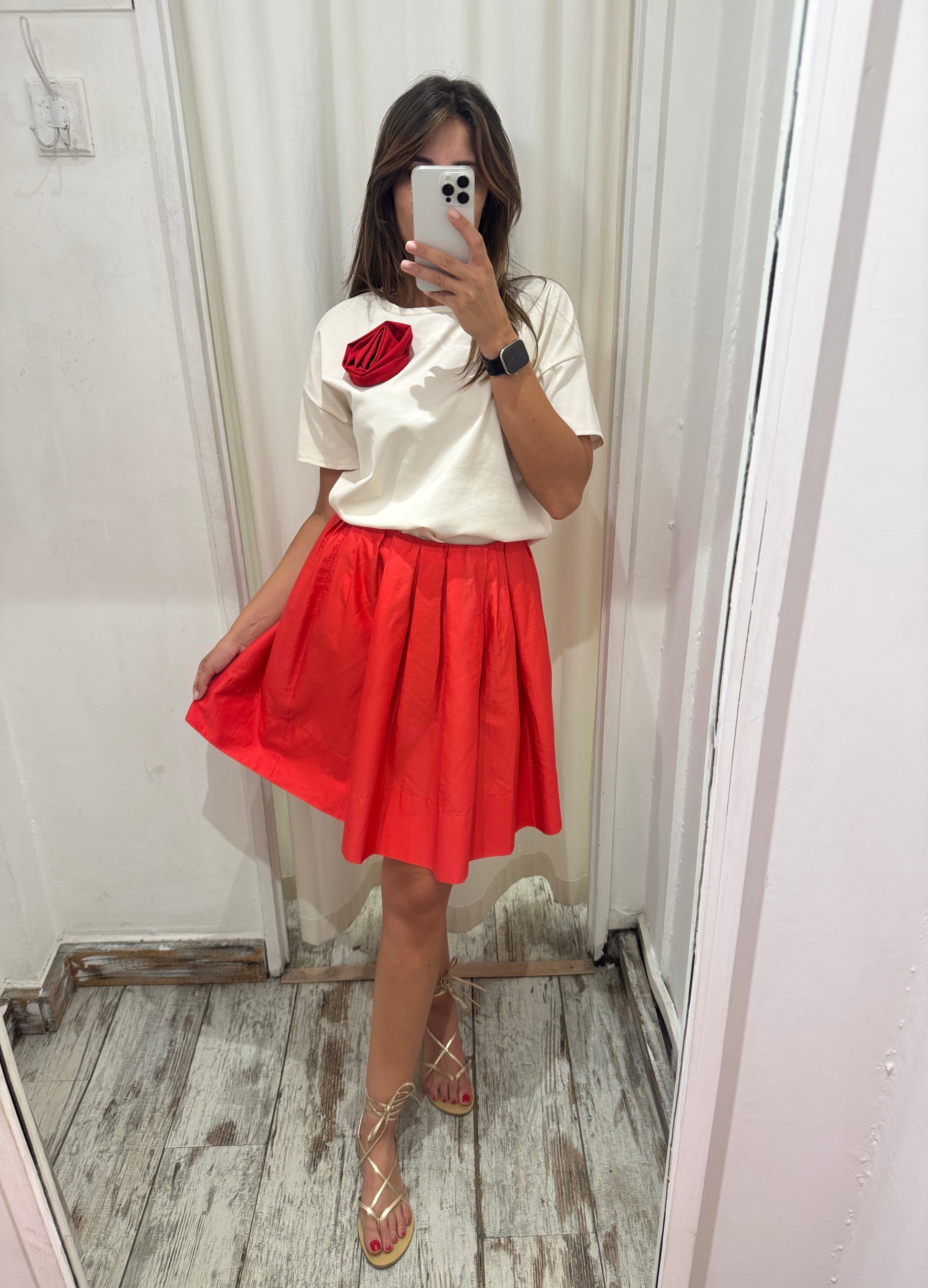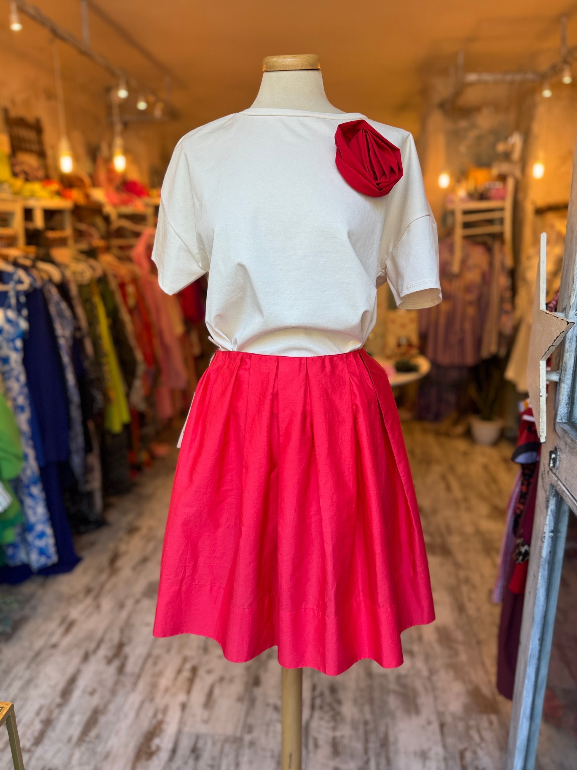Gonna a ruota Tara Jarmon in cotone corallo. Zip posteriore a chiusura
