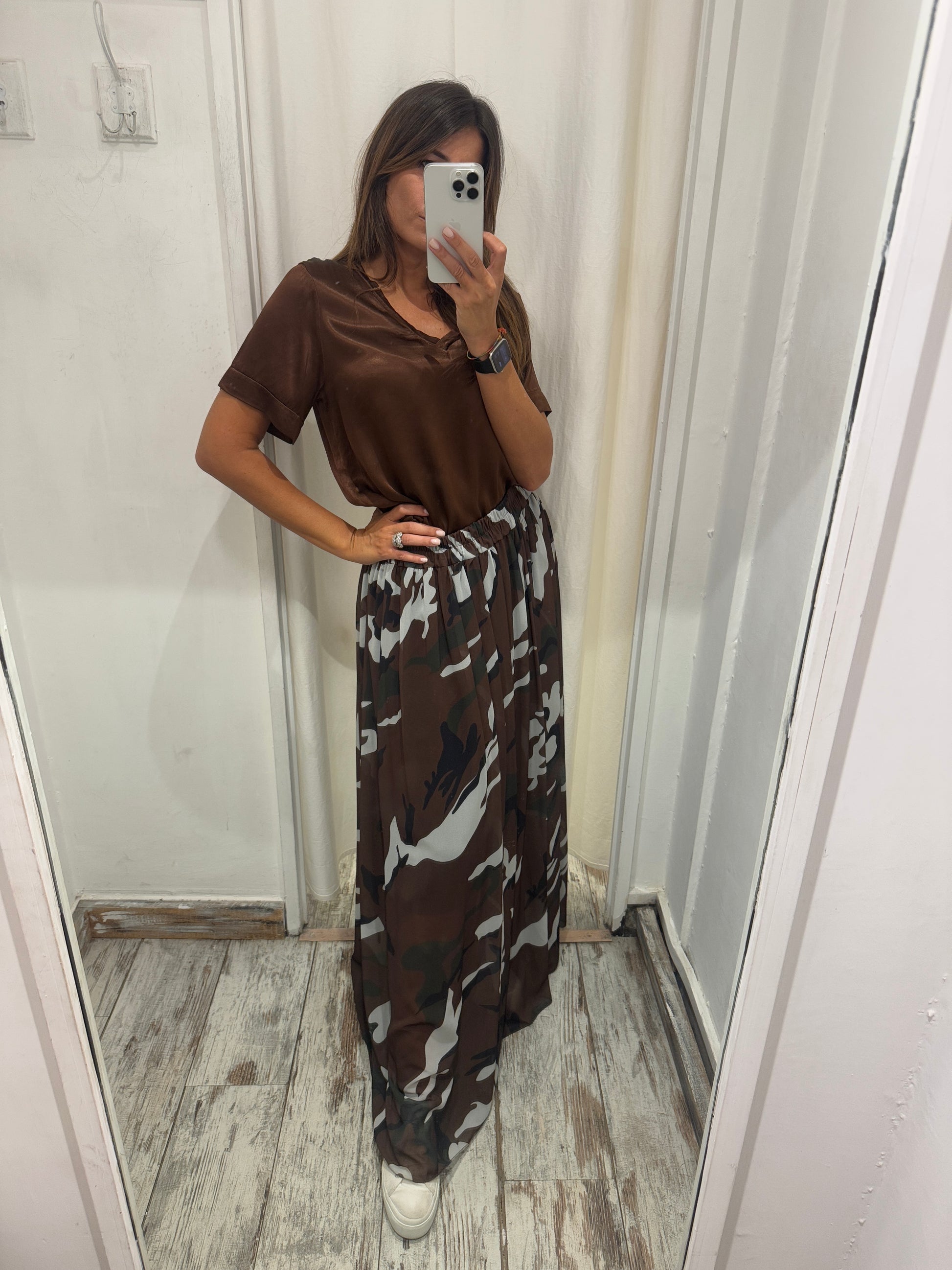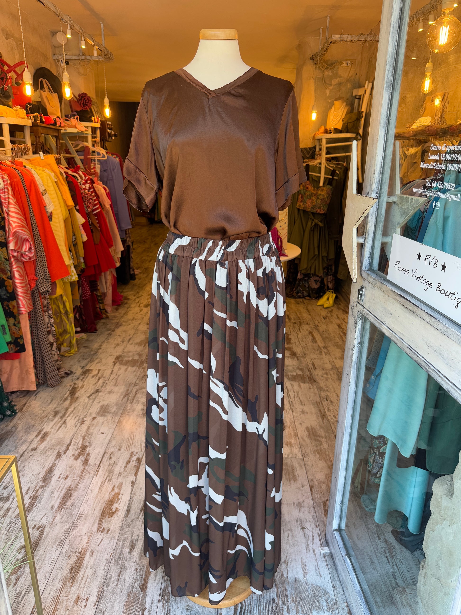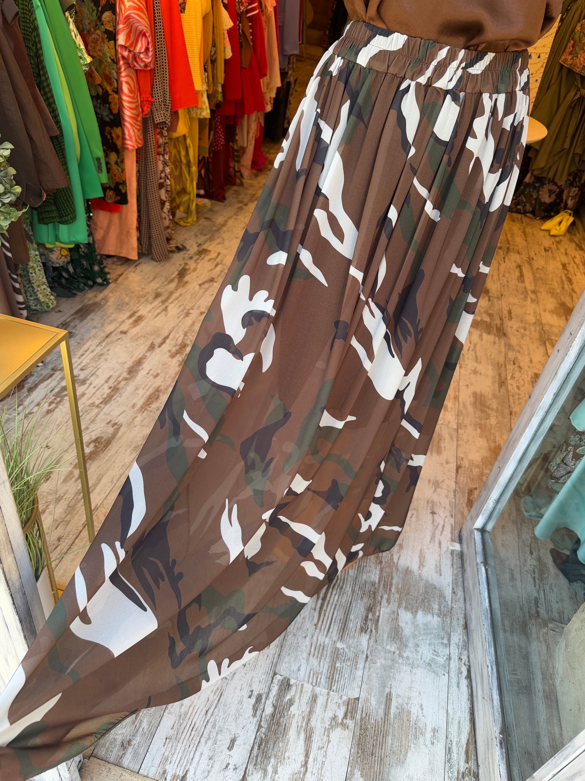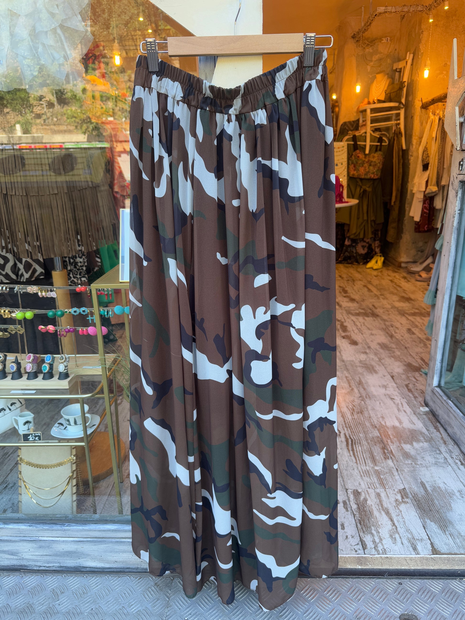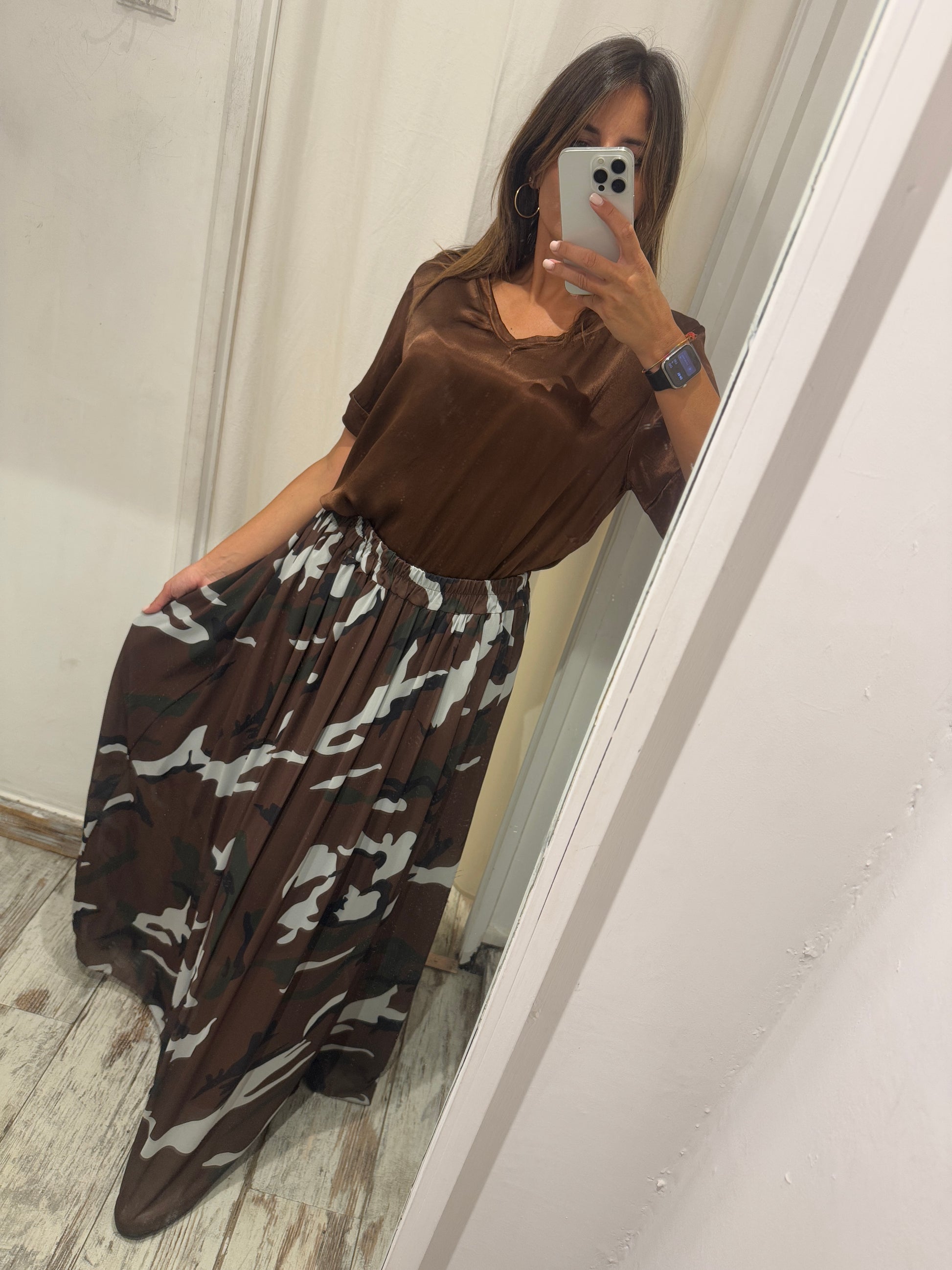 gonna lunga camouflage con elastico in vita. Sottogonna interna.