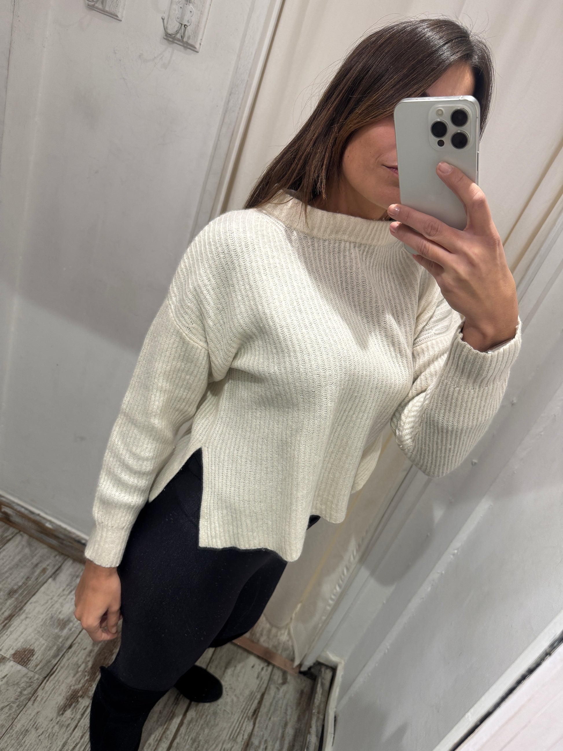 Maglia Intrend in cashmere panna con spacchetti laterali.