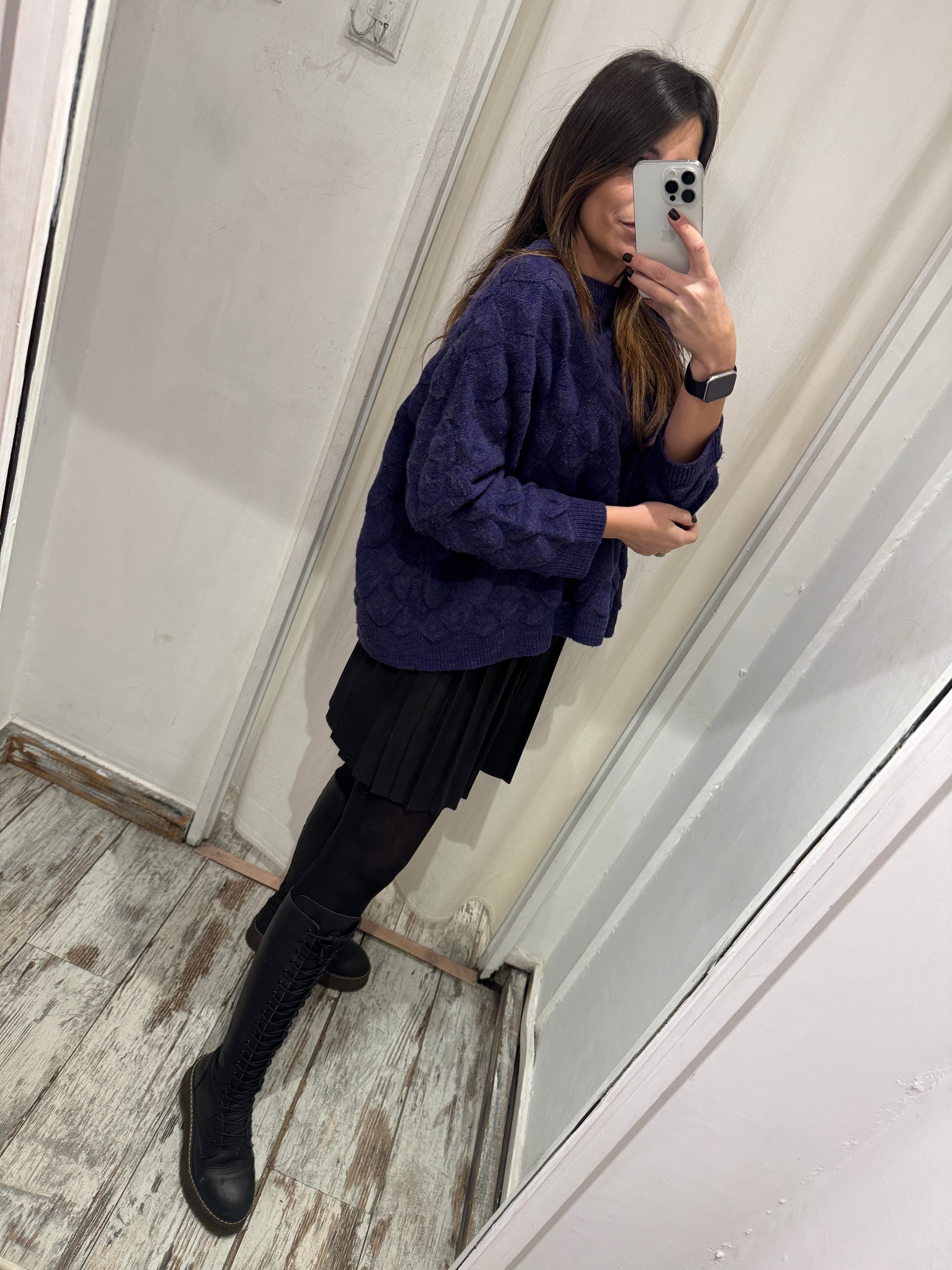 maglia Kuit Kuit viola over con manica a 3/4 in lana.