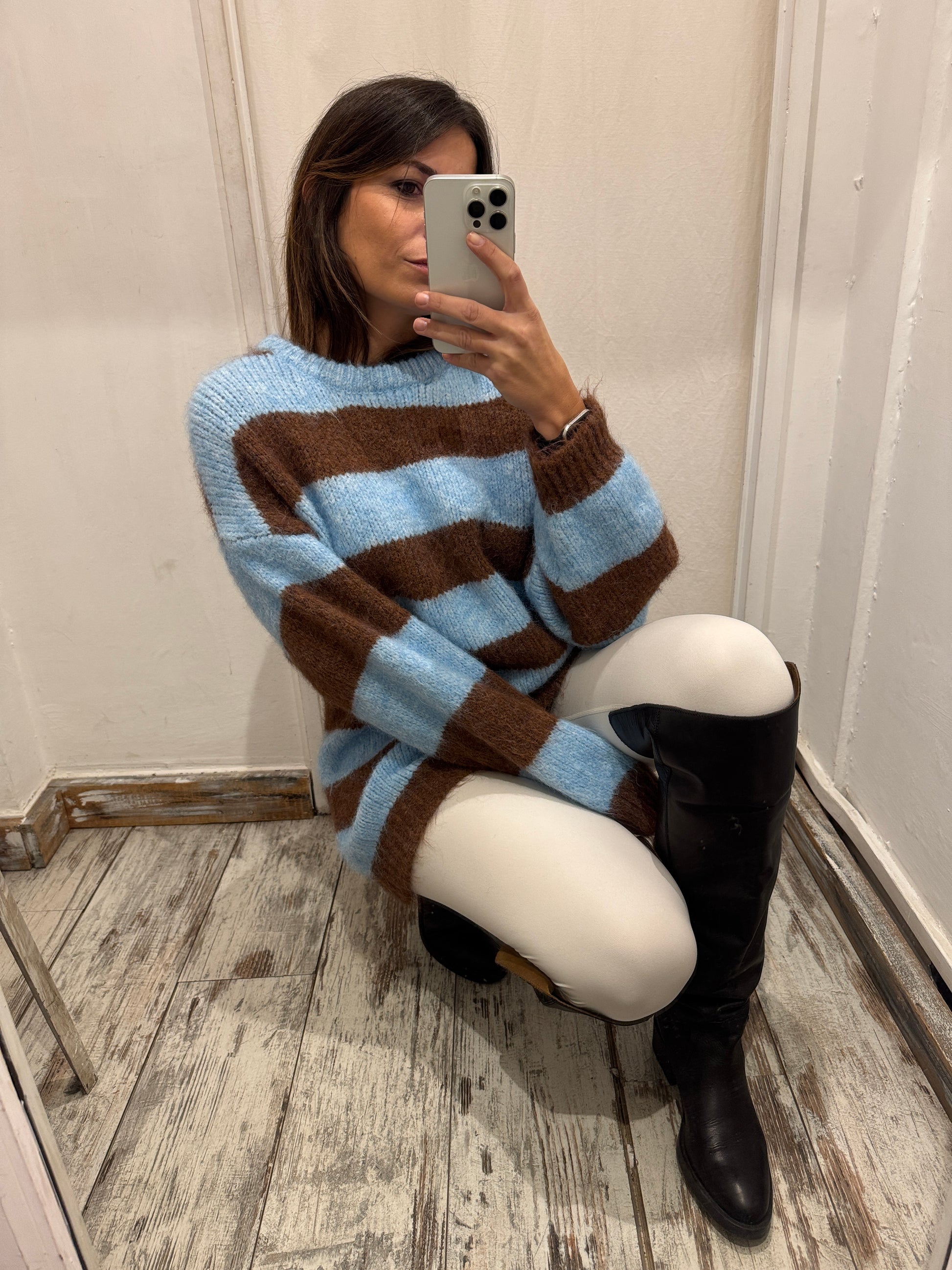 MAGLIA LUNGA A RIGHE CELESTE E MARRONE