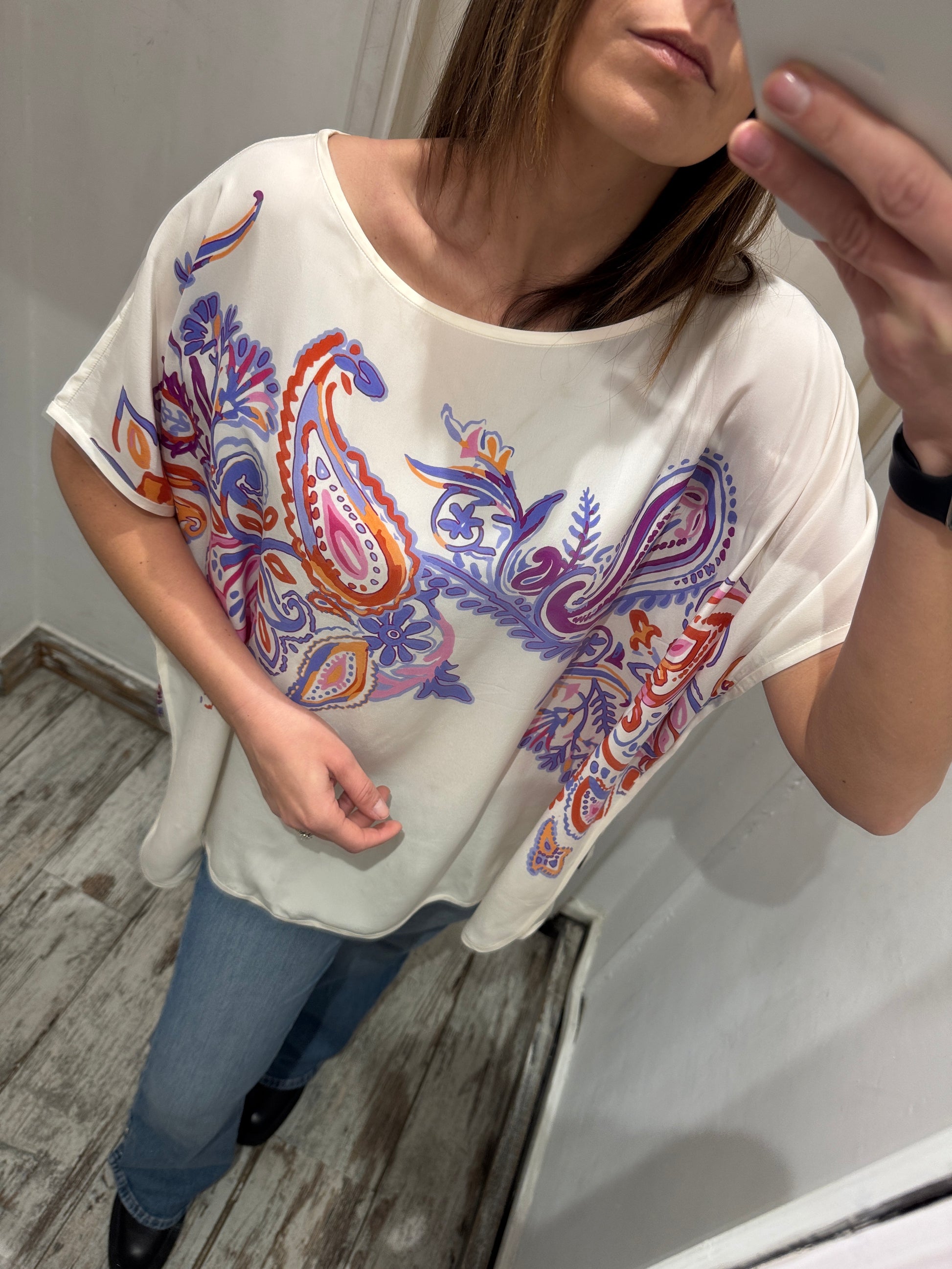 NEW COLLECTION - BLUSA LORO PIANA SETA FANTASIA VIOLA e ARANCIO