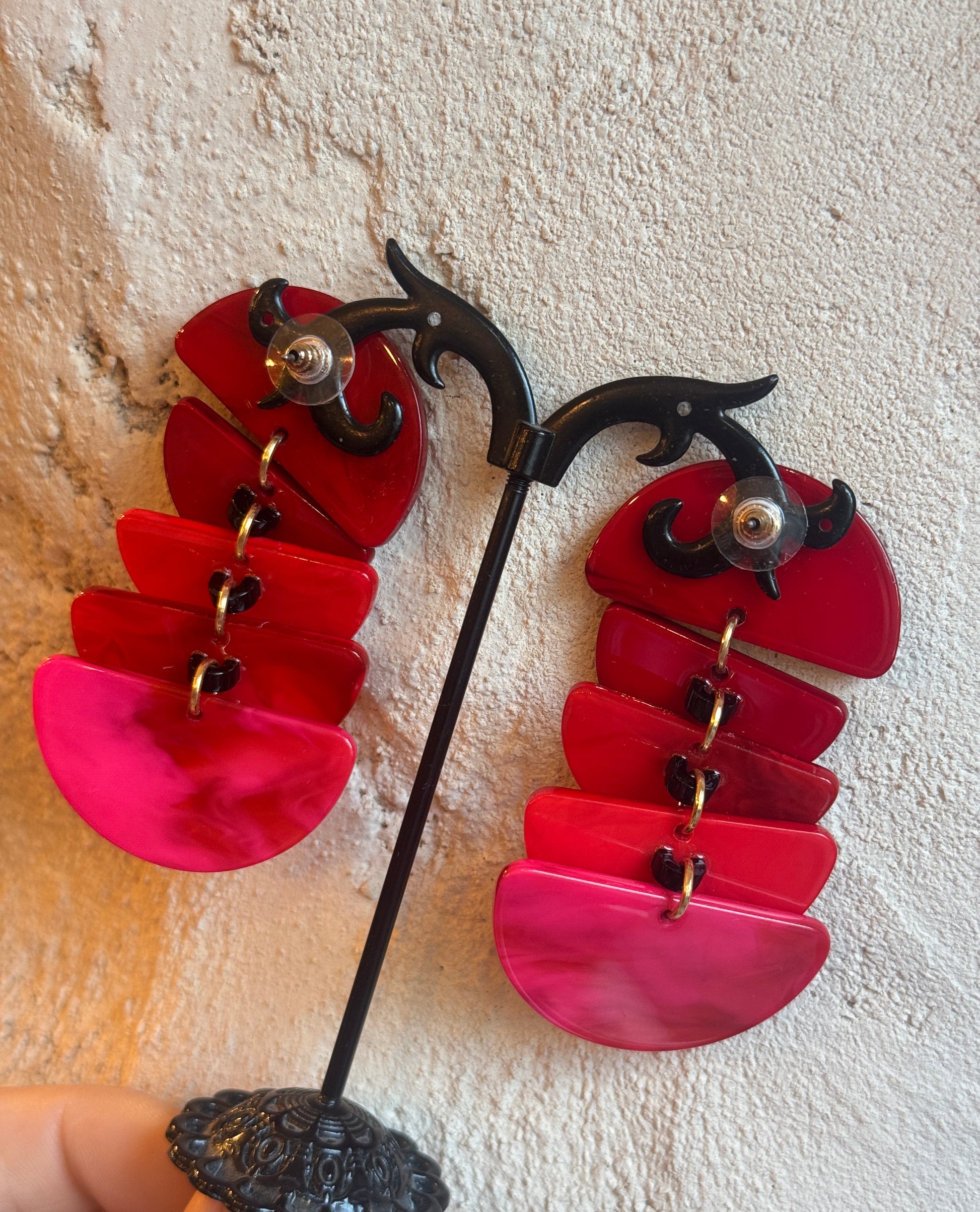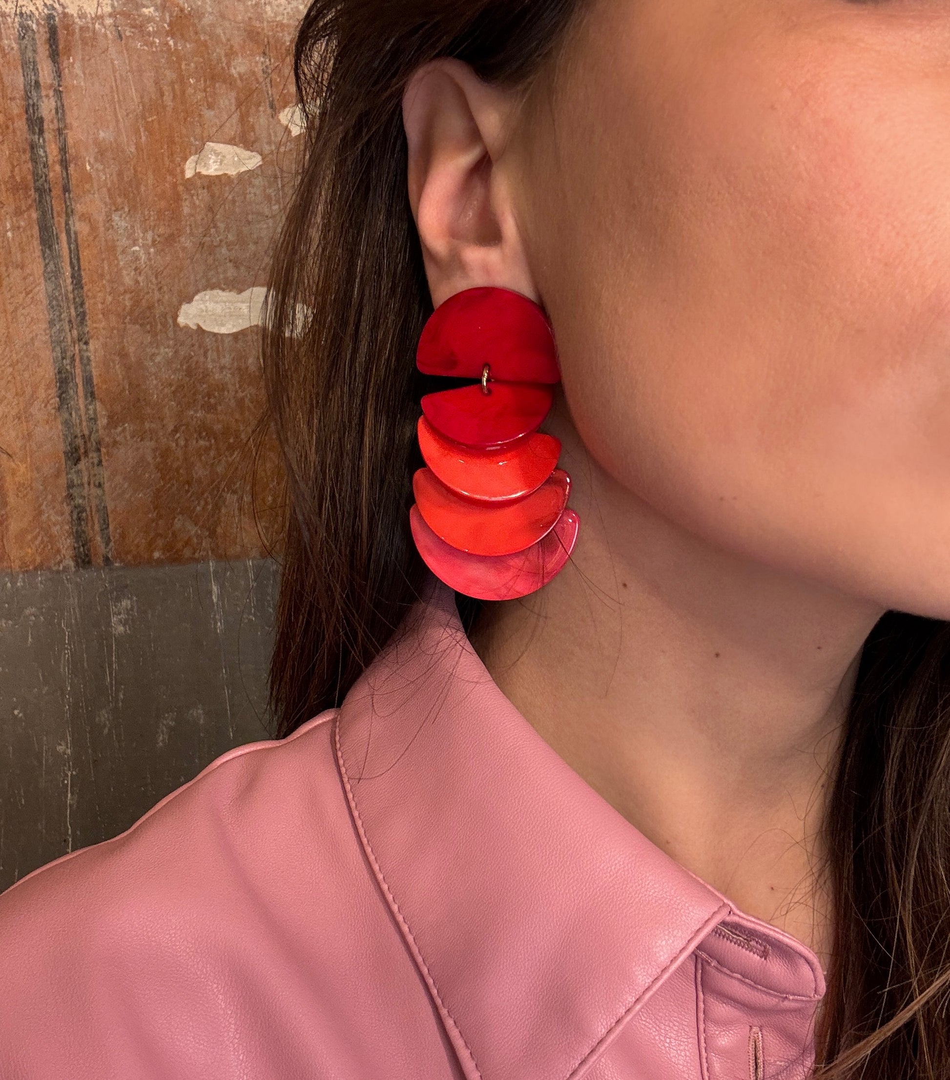 ORECCHINO IN RESINA ROSSO E ROSA