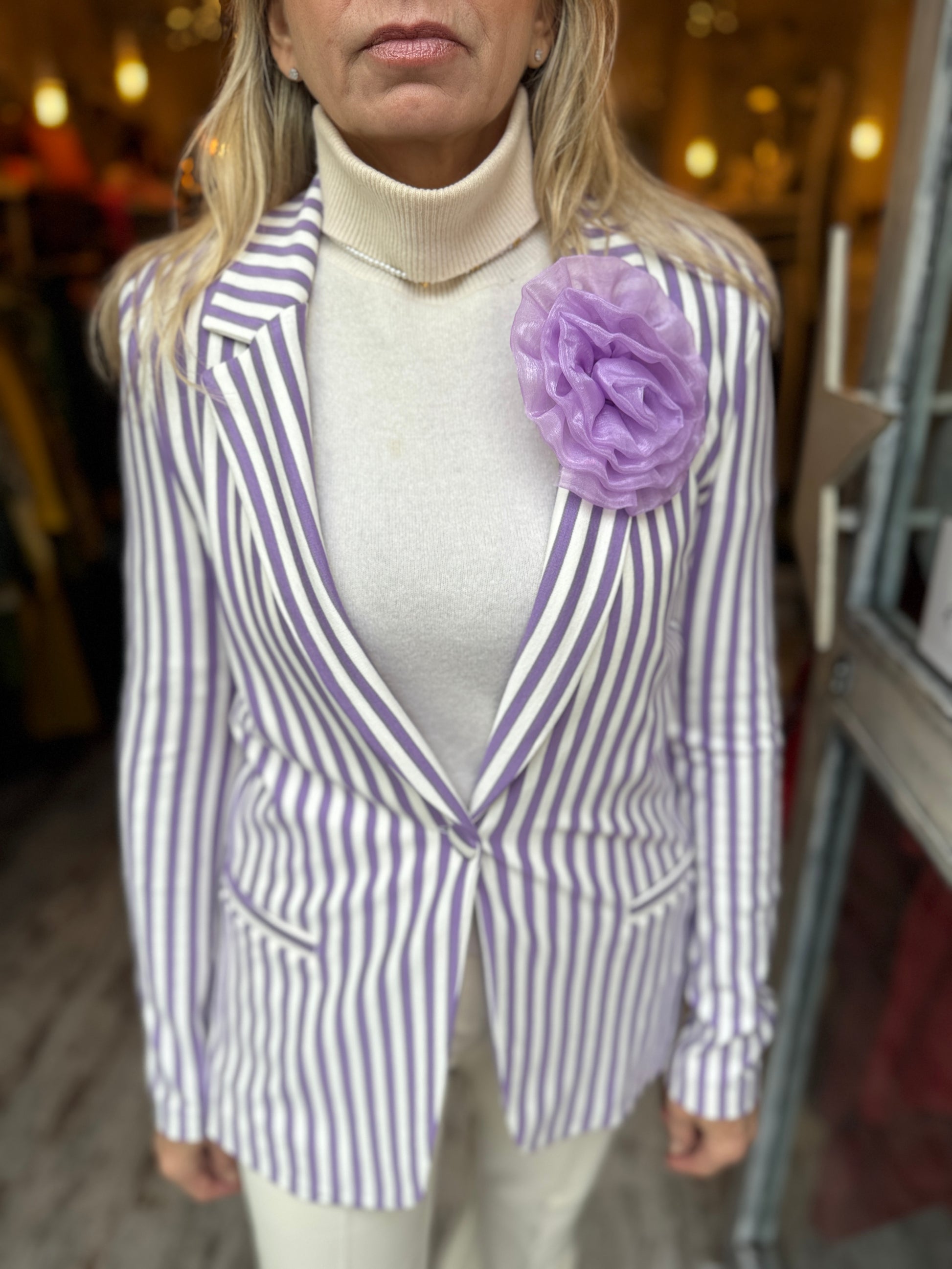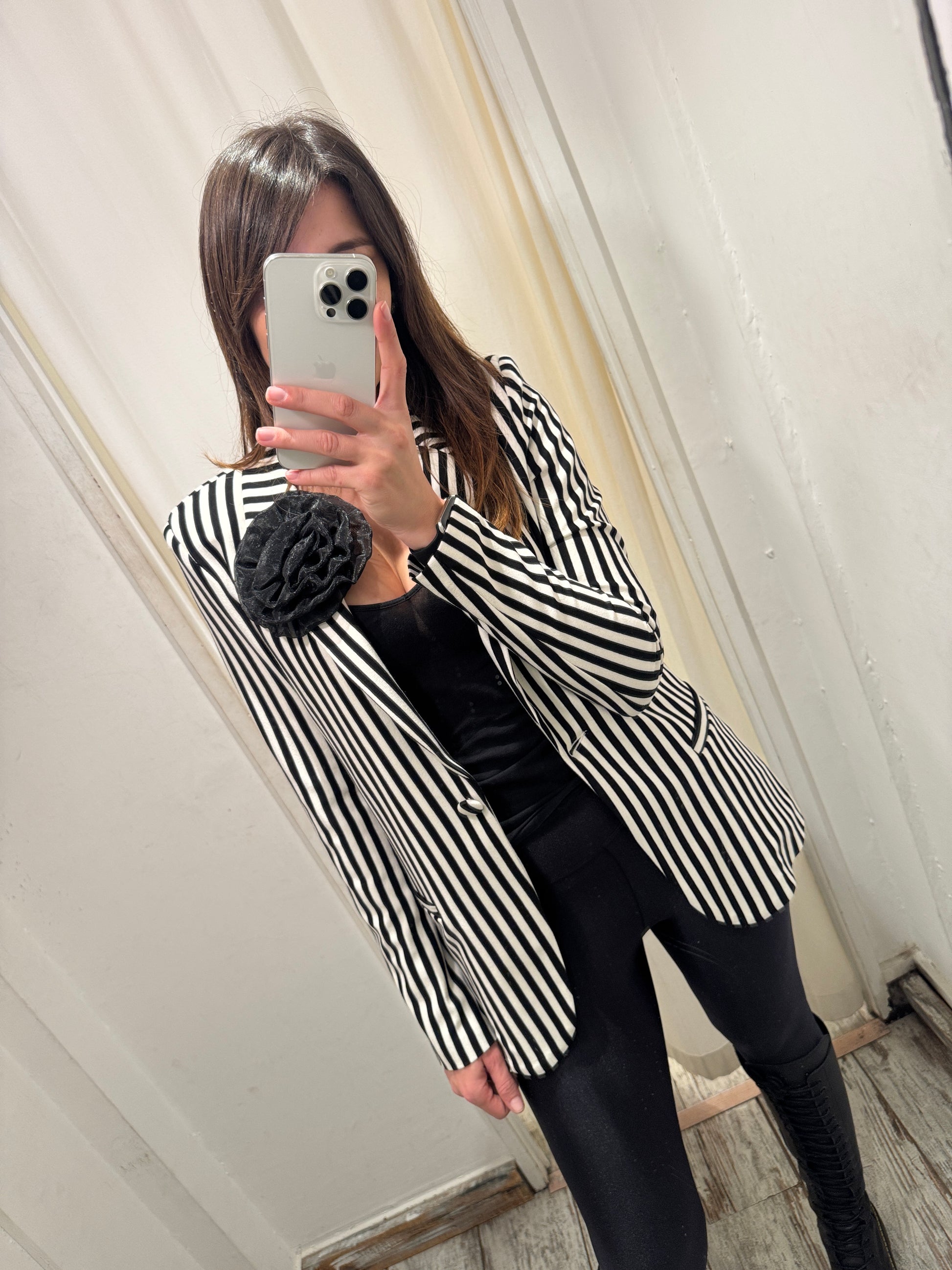 Blazer Le Robe monopetto a righe con spilla inclusa removile. Spalline interne. Non è foderato.